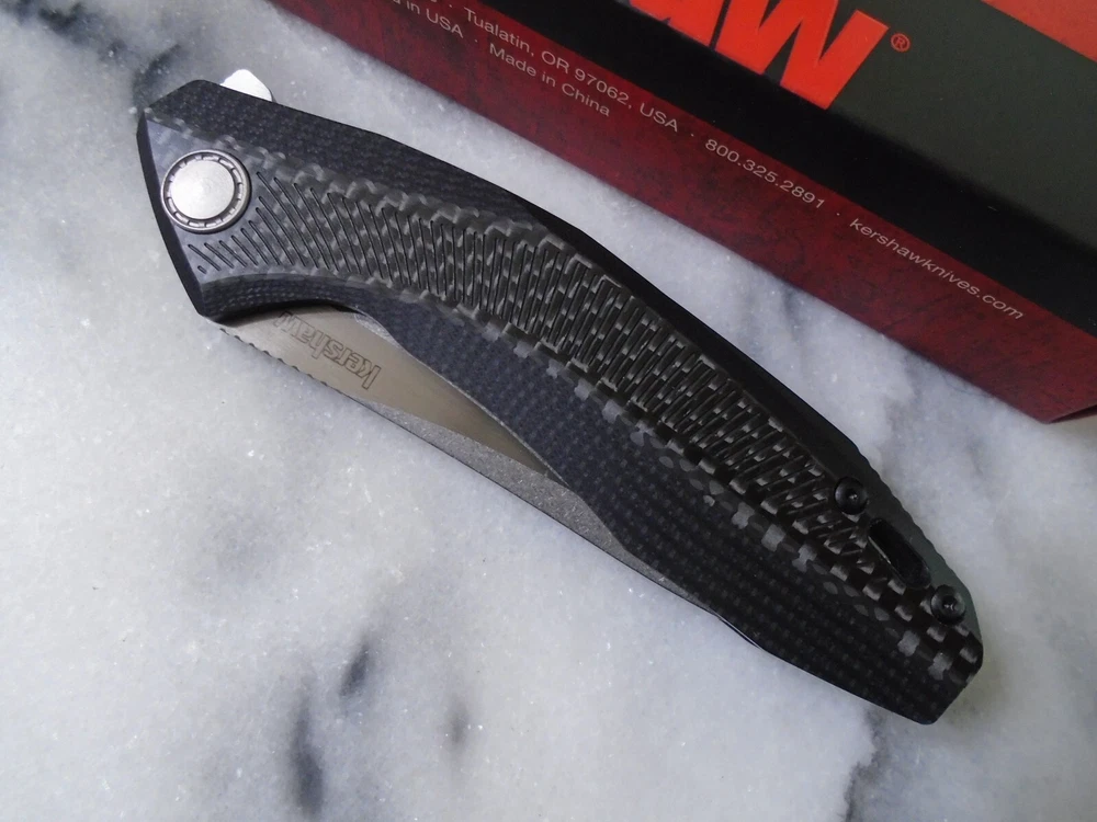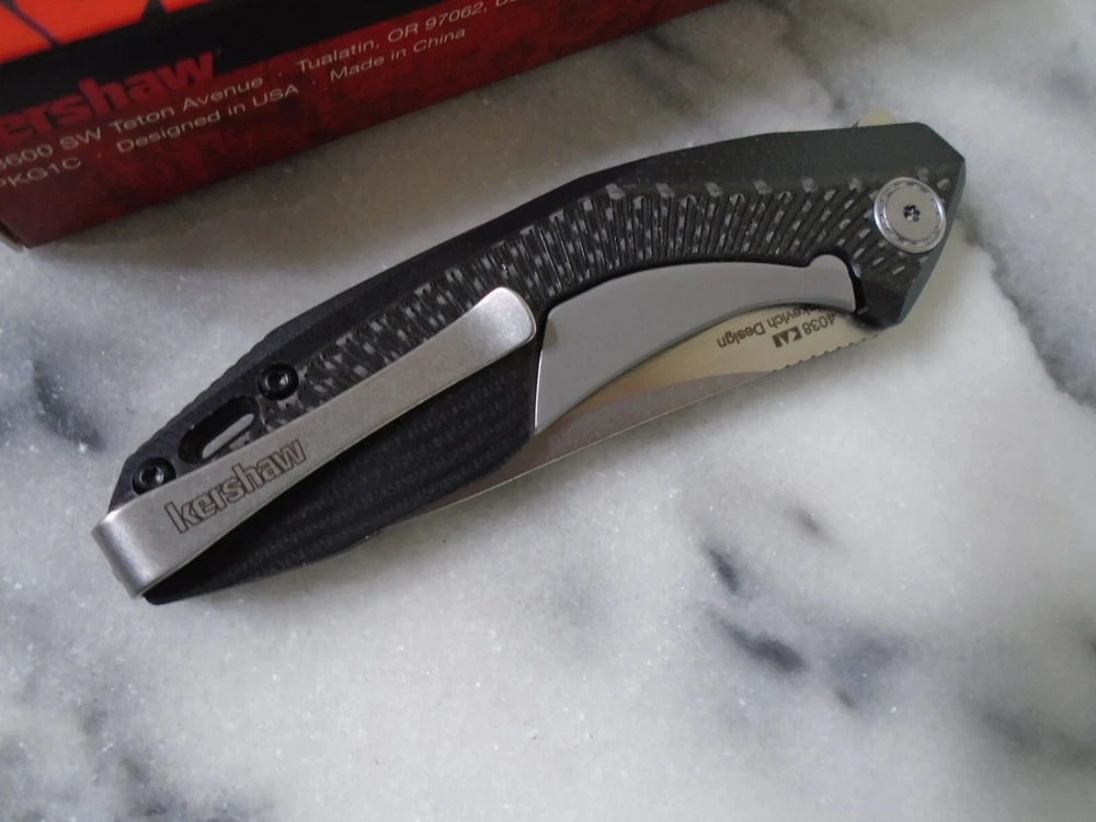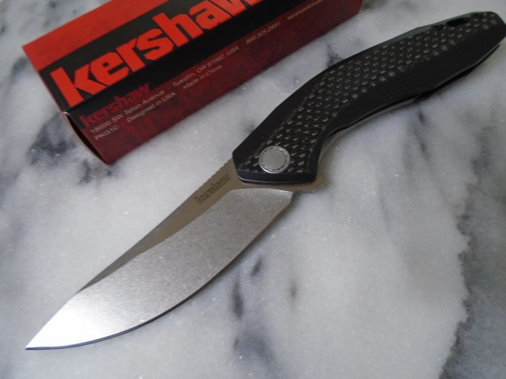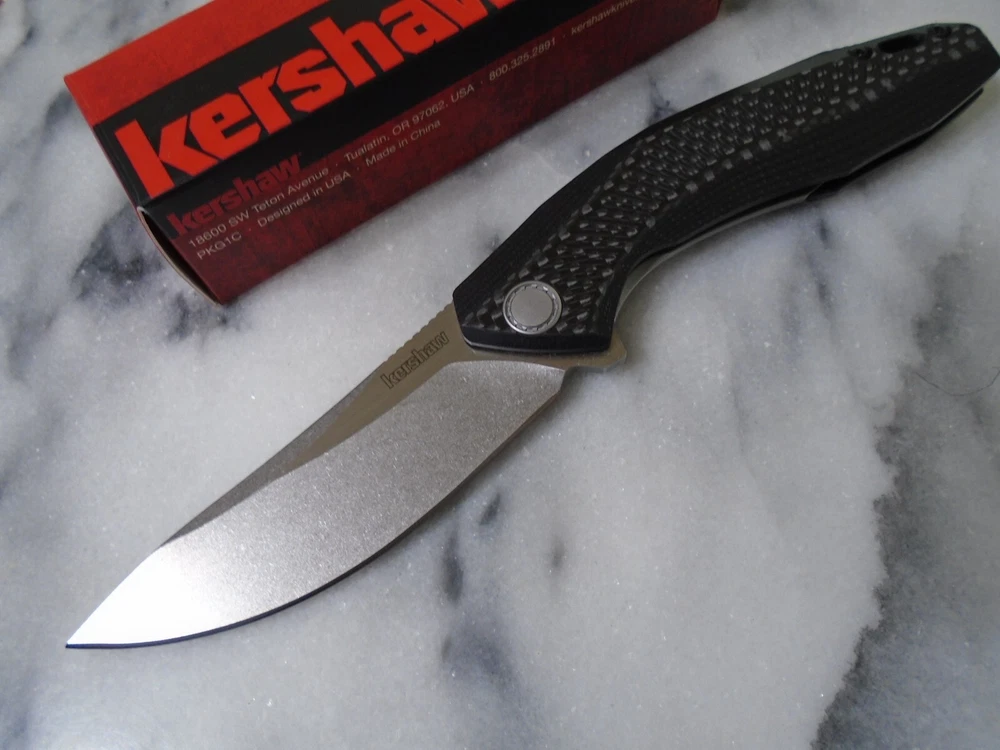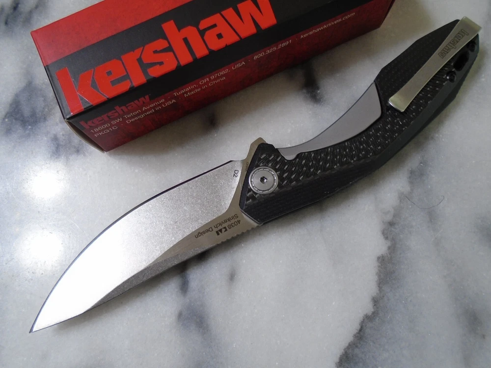 Number of Blades: 1 Type: Pocketknife Blade Type: Drop Point Opening Mechanism: Ball Bearing Pivot Lock Type: Liner Original/Reproduction: Original Color: Black Model: 4038 Blade Range: 3.60 inches Brand: Kershaw Blade Material: D2 tool steel Blade Edge: Plain Dexterity: Ambidextrous Handle Material: G10 Carbon fiber