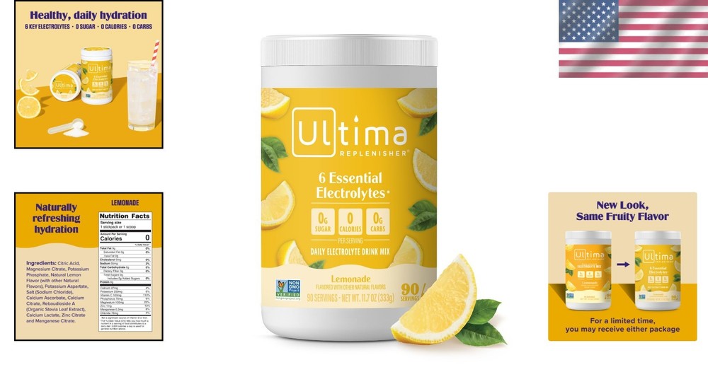 Keto-Friendly Electrolyte Powder - 90 Servings of Lemonade Flavor Hydration ‹ › ‹ › ‹ › ‹ › ‹ › ‹ › ‹ › ‹ › ‹ › Keto-Friendly Electrolyte Powder - Lemonade Flavor Refresh and replenish your body with our electrolyte powder, specifically crafted for your hydration needs. With 90 servings of delightfully refreshing lemonade flavor, this electrolyte mix is your key to staying energized throughout the day. Key Features: Delivers everyday hydration packed with 6 essential electrolytes. Contains vitamin C and zinc to support your overall well-being. 0 sugar, calories, and carbs for guilt-free hydration. Naturally sweetened with organic stevia leaf and infused with real fruit flavors. Gluten-free, , keto-friendly, and Non-GMO ensuring safe consumption. What’s Inside: This daily electrolyte drink mix is formulated with a perfect blend of magnesium, calcium, potassium, chloride, phosphorus, and sodium, skillfully designed to replenish your electrolyte levels without the unwanted sugar and artificial sweeteners. Every sip brings you pure, delicious hydration. Convenience at Home: The spacious 90-serving canister is ideal for easy storage at home. For a refreshing drink, simply add 1 scoop to 16 ounces of water and shake or stir well. Feel free to add ice for an extra chill! The Ultima Difference: With over 25 of innovative approach to electrolyte hydration, we are dedicated to providing you with a delicious and effective way to replenish your body. You deserve balanced hydration that seamlessly fits into your ultimate lifestyle, and our electrolyte powder is just that. Why Choose Our Electrolyte Powder? If you aim to elevate your hydration game authentically and deliciously, look no further! Our keto-friendly electrolyte powder will keep you refreshed, energized, and perfectly hydrated without compromising on your dietary goals. Stock up today and embrace the difference! Shipping Free & Fast Shipping - We offer free shipping to most of the USA with a normal delivery time of 3-7 days. However, due to the current situation, additional delivery time (up to 3 weeks) may be required for some items. Alternative Carriers - We may use alternative carriers (e.g. USPS, FedEx, UPS, etc.) to ensure your package arrives safely and on time. Due to the use of multiple carriers, we are unable to provide a tracking number automatically. Handling Time - Orders are processed and shipped within 1-2 business days of receiving cleared payment. Shipping Restrictions - Shipping to Alaska, Hawaii, Puerto Rico, Guam, and other US territories may incur shipping charges or delivery restrictions. Please contact us before ordering, or your order can be refunded/cancelled. State Restrictions - There may be restrictions based on your state of purchase. For example, certain items may not be shipped to California due to state regulations. Contact for Tracking Updates - If you require tracking updates or have any concerns about the delivery of your order, please feel free to contact us, and we will be happy to assist you. Return 30-Day Hassle-Free Returns - We want you to be completely satisfied with your purchase. If you are not, you can return the item within 30 days of receiving it for a full refund or exchange. Easy Return Process - To start a return, simply contact us and we will provide you with a prepaid return shipping label and detailed instructions. Restocking Fee - There are no restocking fees for returns. However, the buyer is responsible for return shipping costs if the return is not due to a seller's error. Refund Processing Time - Refunds will be processed within 5 business days of receiving the returned item in its condition. Payment We accept all major credit cards, PayPal, and Apple Pay for your convenience. Your payment information is secure and encrypted to ensure a safe and seamless transaction. Please complete your payment within 3 days of purchase to avoid any delays in shipping. Feedback Your feedback is extremely important to us. We strive to provide the best products and customer service possible. If you are satisfied with your purchase, please take a moment to leave us a positive review. If you have any concerns or issues with your order, please contact us before leaving negative feedback. We are committed to resolving any problems and ensuring your satisfaction. Contact Us If you have any questions or concerns, please feel free to out to our customer support team. You can contact us through the eBay messaging system. We are available Monday to Friday, 9:00 am to 5:00 pm EST, and we will do our best to respond to your inquiry within 24 hours. Buy it now and enjoy a pleasant shopping experience! Expiration Date: Electrolyte Powder Drink Mix Unit Quantity: 90 Active Ingredients: Calcium,Chloride,Magnesium,Phosphorus,Potassium,Sodium,Zinc,Vitamin C Formulation: Powder Main Purpose: Hydration Ingredients: Calcium,Chloride,Magnesium,Phosphorus,Potassium,Sodium,Zinc,Vitamin C,Organic Stevia Leaf Flavor: Lemonade Features: All Natural,Gluten-Free,Sugar-Free,Keto Friendly,Non-GMO Type of Diet: Keto Friendly When to Take: After Meal,Before Meal,During Workout Type: Drink Supply: 90 Servings Volume: 11.1 oz Item Weight: 11.7 oz