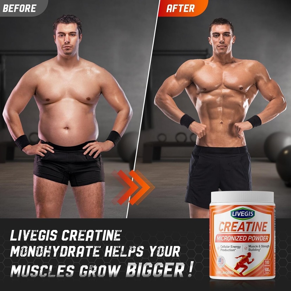 About this item High Purity and Professional Formula: LIVEGIS provides 5g pure creatine monohydrate per servings with no redundant ingredients, ensuring high purity and effectiveness. It is carefully formulated to provide professional nutritional supplementation. Extreme Absorbency:LIVEGIS creatine Using micronized technology greatly enhances absorbency, allowing each dose to fully play its role. It provides strong support for muscles and cellular energy, helping to enhance muscle size, strength, and explosiveness while promoting cellular energy production. Clear Usage Stage Guidance: There are detailed usage instructions for two stages: loading phase and maintenance phase. In the loading phase (days 1 to 5), take 1 scoop mixed with 6 - 10 ounces of water four times a day to quickly increase creatine levels. In the maintenance phase (from day 6 onward), take 1 scoop mixed with 6 - 10 ounces of water once a day for convenient and scientific use to better exert the product's efficacy. Muscle Enhancement: LIVEGIS Creatine promotes lean body mass and supports increases in muscle endurance, muscle capacity, and power output. It helps build stronger and more defined muscles, making it an ideal choice for athletes and fitness enthusiasts looking to improve their physical performance. Cellular Energy Boost: LIVEGIS Creatine assists the cells of the body in creating energy more efficiently. This not only benefits exercise capacity but also provides an overall energy boost for daily activities. It can help you feel more energetic and capable of tackling demanding workouts and tasks.