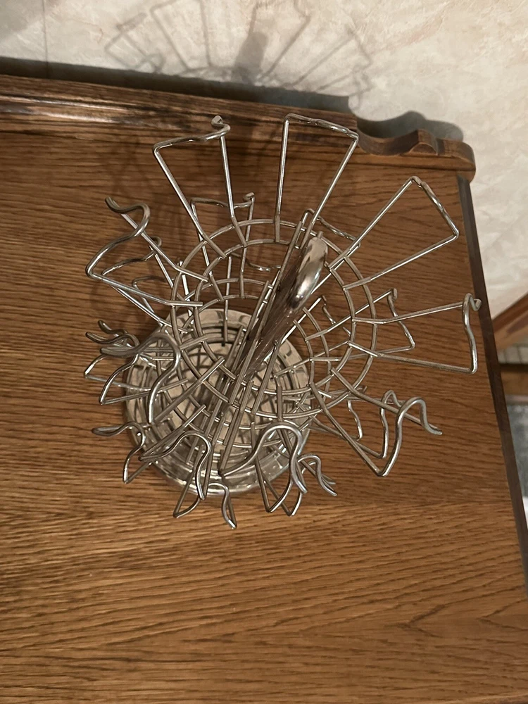This Keurig coffee pod holder is a convenient and stylish way to store your favorite K-Cups. With a capacity of 24 pods, this chrome and metal cylinder-shaped rack features a carousel/revolving design with three tiers and a rotating base for easy access. The modern style and silver color make it a great addition to any kitchen decor. Measuring 7 3/4 inches in diameter and 9 1/2 inches in height, this free-standing coffee pod holder is perfect for medium-sized spaces.
