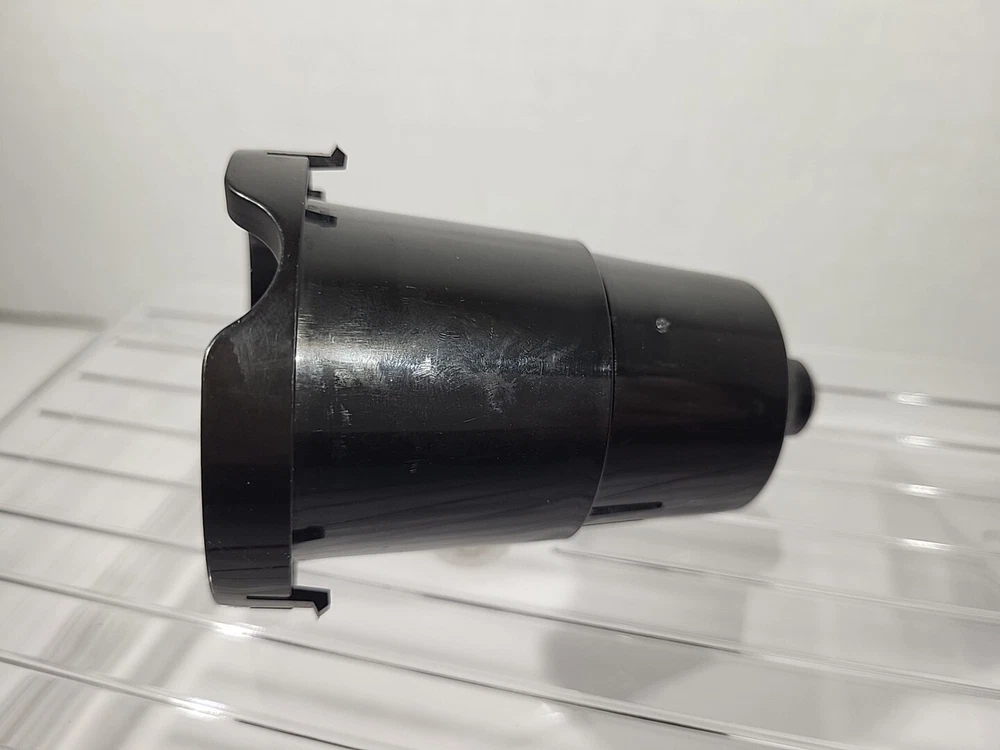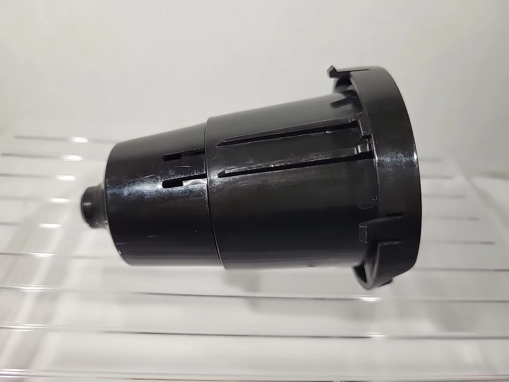 This Keurig K Cup POD Holder is a genuine OEM replacement part that is compatible with various Keurig models including K60, K70, K40, K50, K75, K77, K10, K65, K45, and K15. Made of lightweight and easy-to-clean plastic material, it features a sleek black color. The holder can hold one K Cup POD at a time and is dishwasher safe, making it convenient to use and maintain. It measures 3.5 inches in height and 2.25 inches in width, with a weight of 8 ounces.