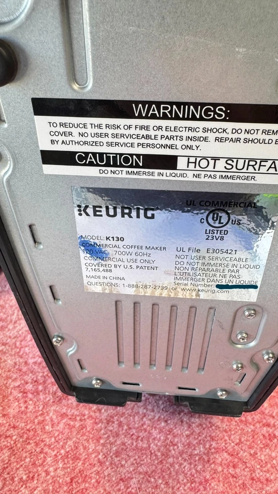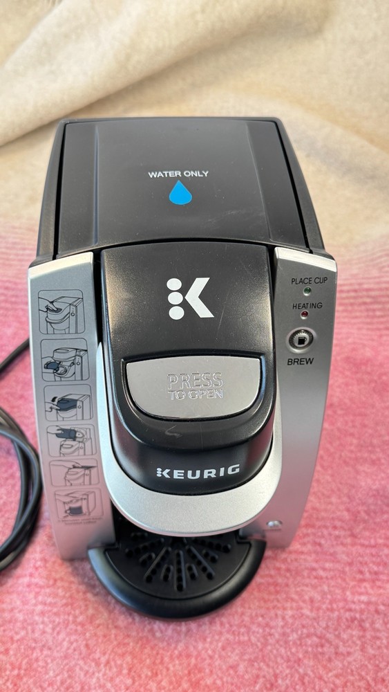 Model K130 commercial/hospitality brewer (hotel room style) Single-serve K-Cup system; simple Place Cup / Heating lights and Brew button Approx. 3-minute heat/brew cycle; 120V, 700W Compact footprint with removable drip tray Cleaned and ready to use (recommend descaling on arrival for best taste) Includes unit only (no pods) as shown Fast, careful shipping Long 68in plug what is pictured is a like picture of what you will get i have several and only took one picture. all look the same light scratches and no difference.