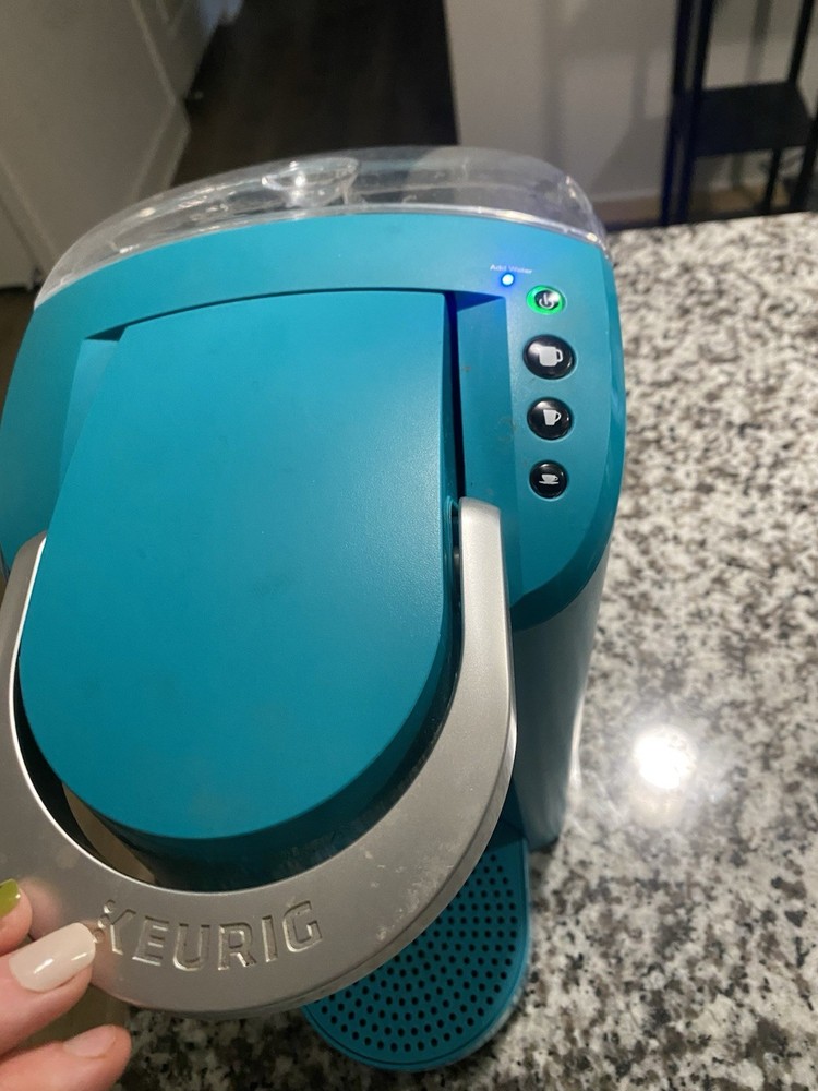 The Keurig K-Compact Single Serve Coffee Maker in Turquoise is a stylish and efficient coffee maker perfect for any kitchen. With a 1.2 qt water tank capacity and a 10 capsule/pod capacity, this maker allows for quick and easy brewing of your favorite coffee drinks. Its sleek blue color and plastic material give it a modern look, while its analog control panel and energy-saving mode make it easy to use and efficient. Featuring a heat-up time of just 20-25 seconds and a bar pressure of less than 5 bar, the Keurig K-Compact is sure to satisfy your coffee cravings with delicious espresso, latte macchiato, and more.
