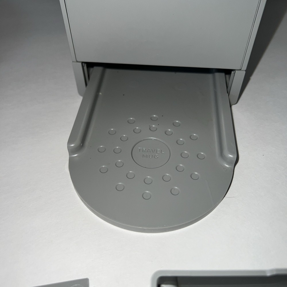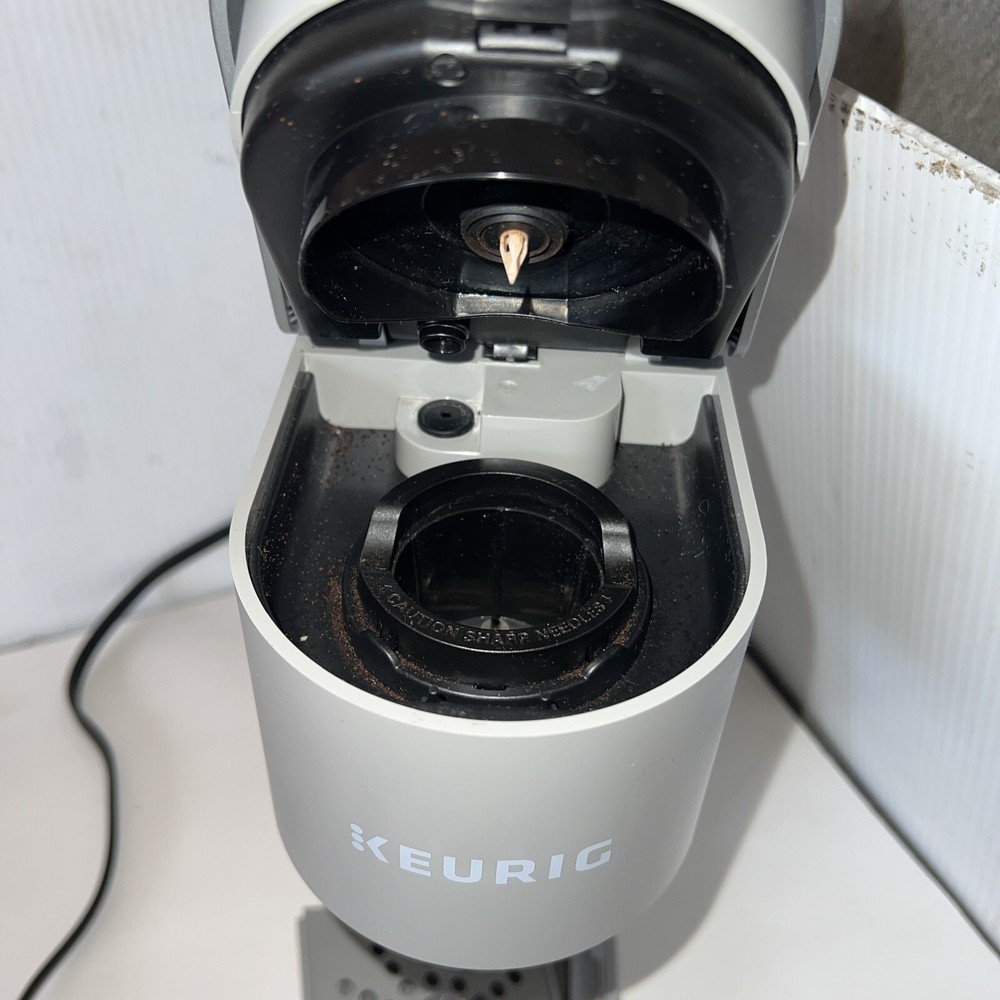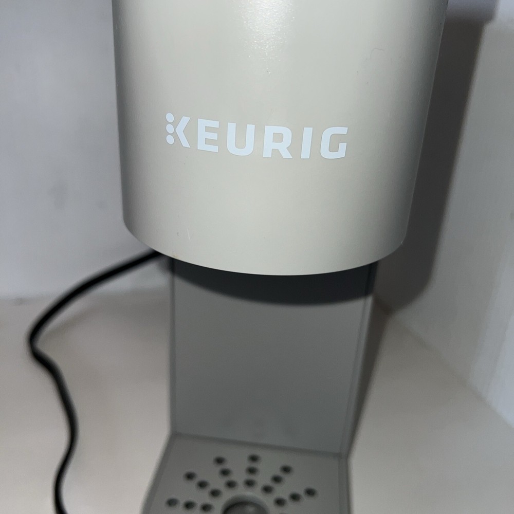 Introducing the Keurig K-Mini Coffee Maker, the perfect addition to your kitchen. This compact coffee brewer has a gray color and is made of durable plastic material. It is compatible with Capsule/Pad systems from Cafissimo and Nespresso, allowing you to enjoy a variety of coffee types. With a power source of wall plug-in and a power of 1470W, this coffee maker is easy to use and operates quickly. It has a capsule/pod capacity of 1 and a bean/coffee capacity that varies. The K-Mini also features an auto shut-off function, a removable drip tray, and a removable water tank for easy cleaning. This coffee maker is perfect for those who want a quick and easy cup of coffee without the hassle. Barely used.