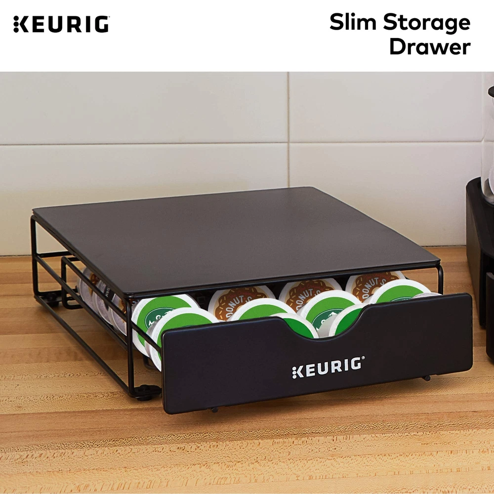 Keurig Slim Non-Rolling Storage Drawer, Coffee Pod Storage, Holds up to 24 Keurig K-Cup Pods, Black, Storage Drawer - 24ct, 9.2 x 3.3 x 12.2 inches Holds up to 24 K-Cup pods Compact design takes up no additional counter space Fits under any Keurig coffee maker High quality, durable metal construction Not compatible with K-Mug, K-Carafe, Vue, or Rivo pods Keep your countertops free of clutter and your favorite K-Cup pods always at hand with the Keurig slim storage drawer. Holding up to 24 K-Cup pods, it’s our slimmest, most space-saving pod storage solution. Designed with both durability and accessibility in mind, the Keurig slim storage drawer is made of high quality materials and fits directly underneath your Keurig Coffee maker, so your favorite beverages can stay tucked away but always within reach. This stationary storage drawer fits under all Keurig Coffee makers, but only holds K-Cup pods. K-mug, K-Carafe, Vue, and Rivo pods are not compatible. If brewing with a Keurig carafe, the Coffee maker should be removed from atop the storage drawer. Shipping We offer FREE shipping on all orders! We ship within Three business days of payment, usually sooner. We use a selection of shipping services such as UPS, FedEx, USPS etc. We only ship to the lower 48 states, no APO/FPO addresses or PO Boxes allowed. Local pickups and combined shipping options are not provided at this time. Return You can return a product for up to 30 days from the date you purchased it ONLY if it's in the original condition. The product cannot be used or open. Any product you return must be in the exact same condition you received it and in the original packaging. Please keep the receipt. Feedback Customer satisfaction is very important to us. If you have any problem with your order, please contact us and we will do our best to make you satisfied. Contact Us If you have any queries, please contact us via ebay. We usually respond within 24 hours on weekdays. Please visit our eBay store to check out other items for sale! Thank you for shopping at our store.