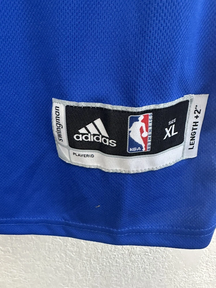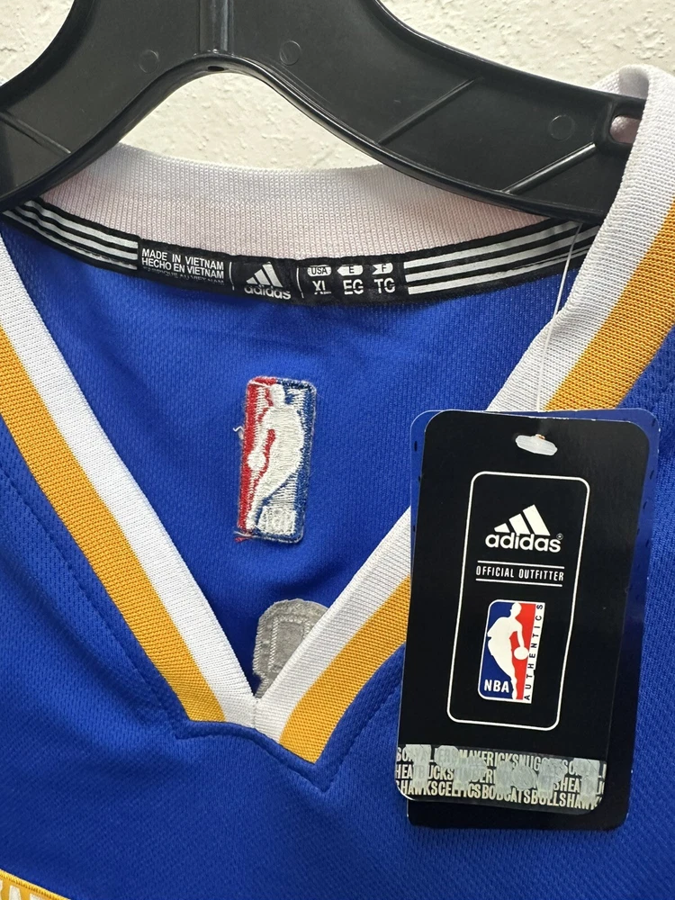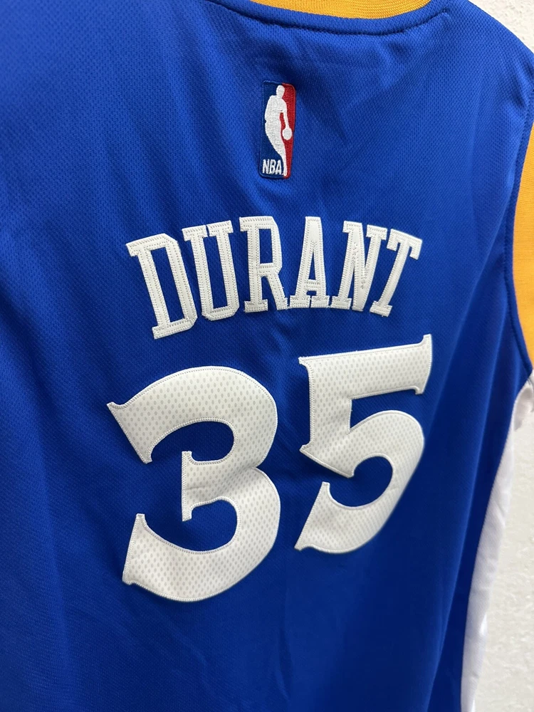 Adorn yourself in the vibrant blue of the Golden State Warriors with this Kevin Durant jersey by Adidas. Designed for fans who want to show their support during the regular season and beyond, this jersey is a staple for any basketball enthusiast. The size XL ensures a comfortable fit for a range of body types, while the high-quality materials and construction reflect your team's impeccable style on and off the court. Officially licensed by the NBA, this jersey is perfect for those who appreciate the legacy of basketball and the prowess of Kevin Durant. Whether you're at the game or just out and about, this Adidas jersey is a versatile piece of fan apparel that lets you carry the spirit of the Warriors wherever you go.