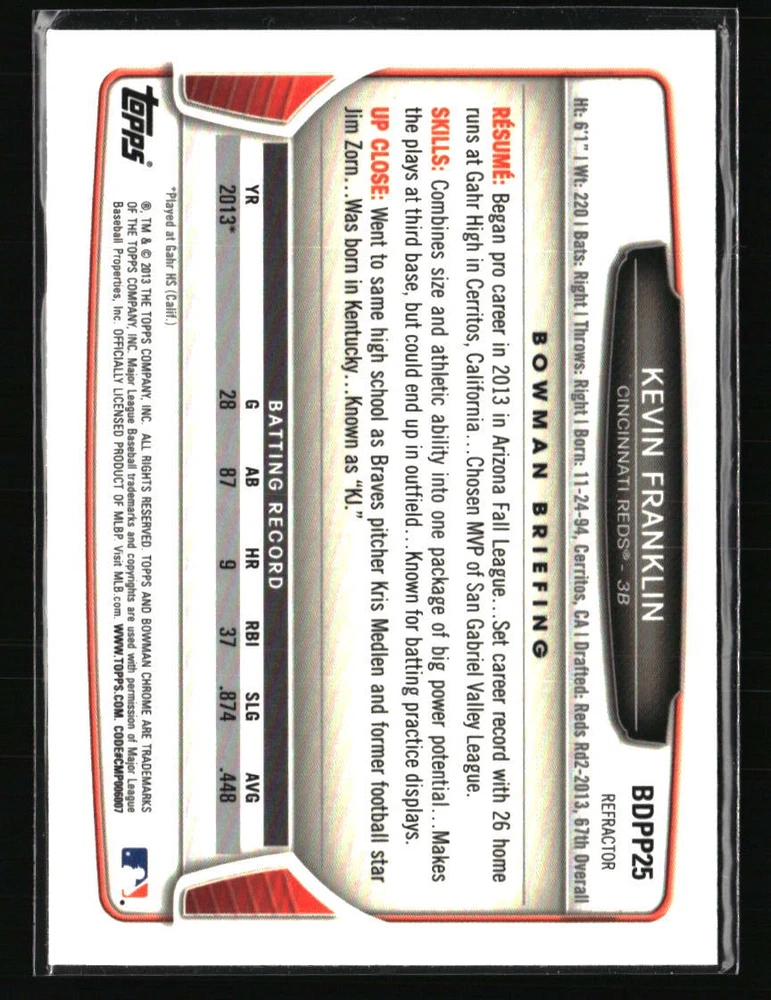 Kevin Franklin 2013 Bowman Chrome Draft Picks & Prospects #BDPP25 Baseball