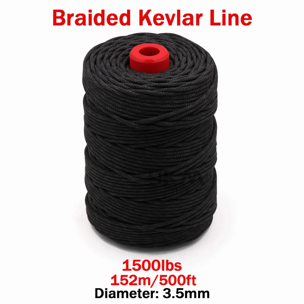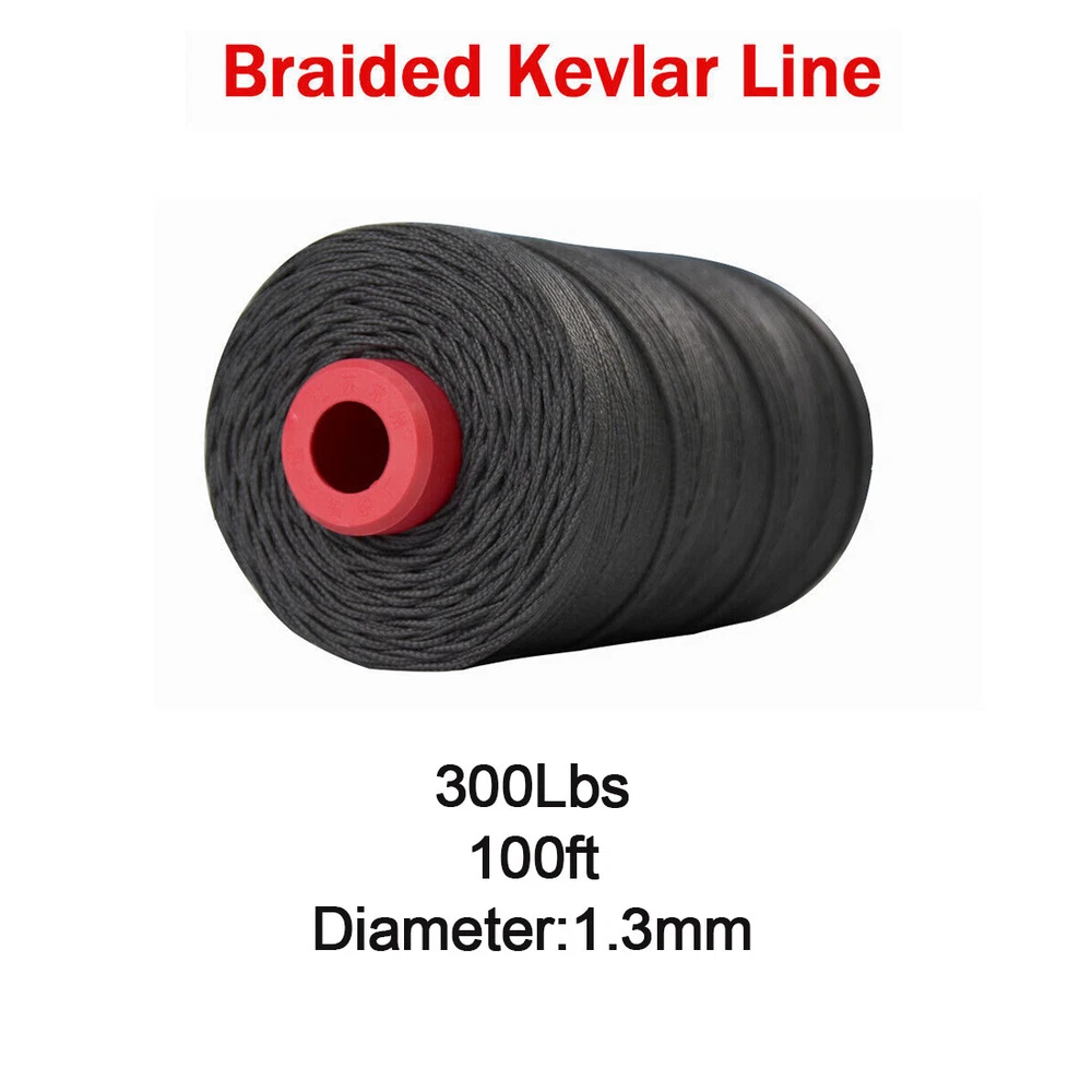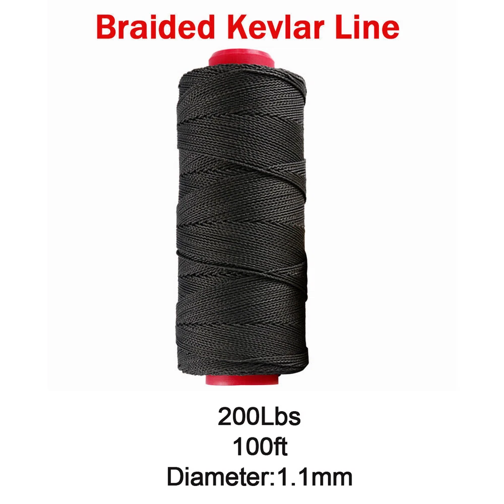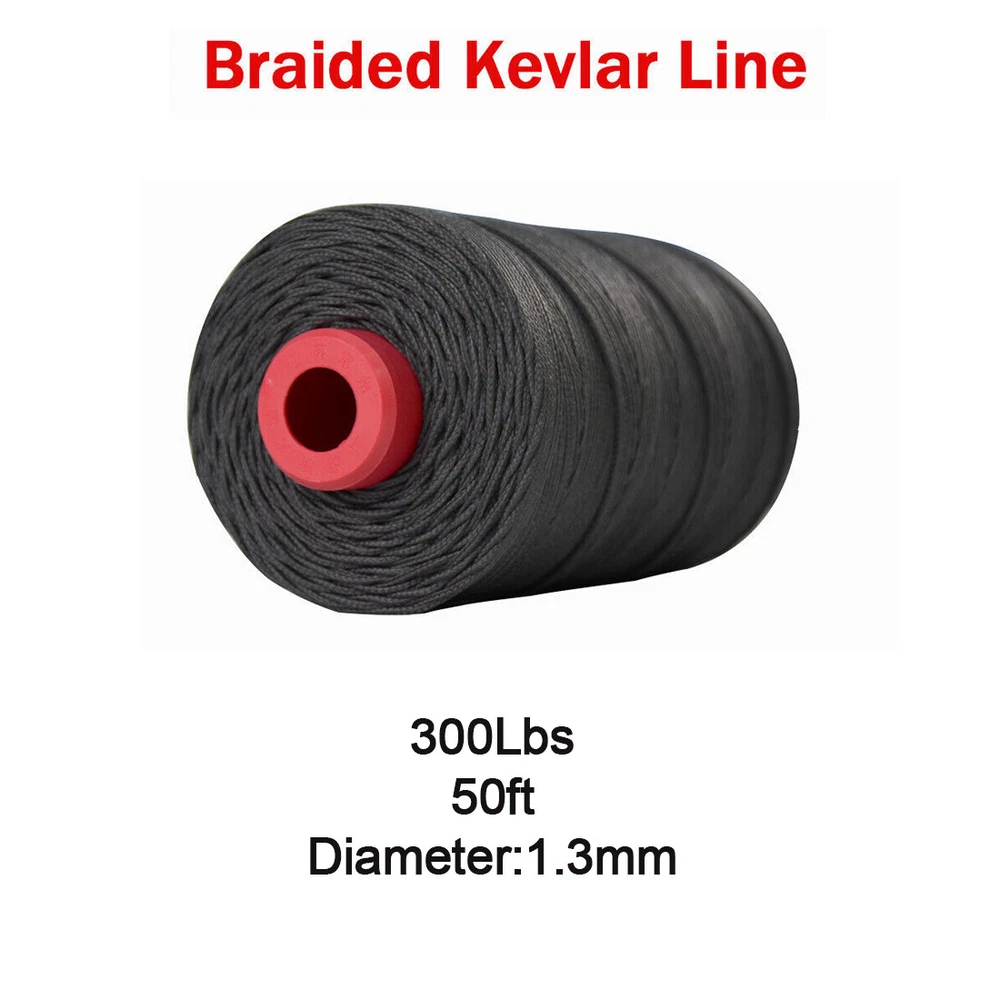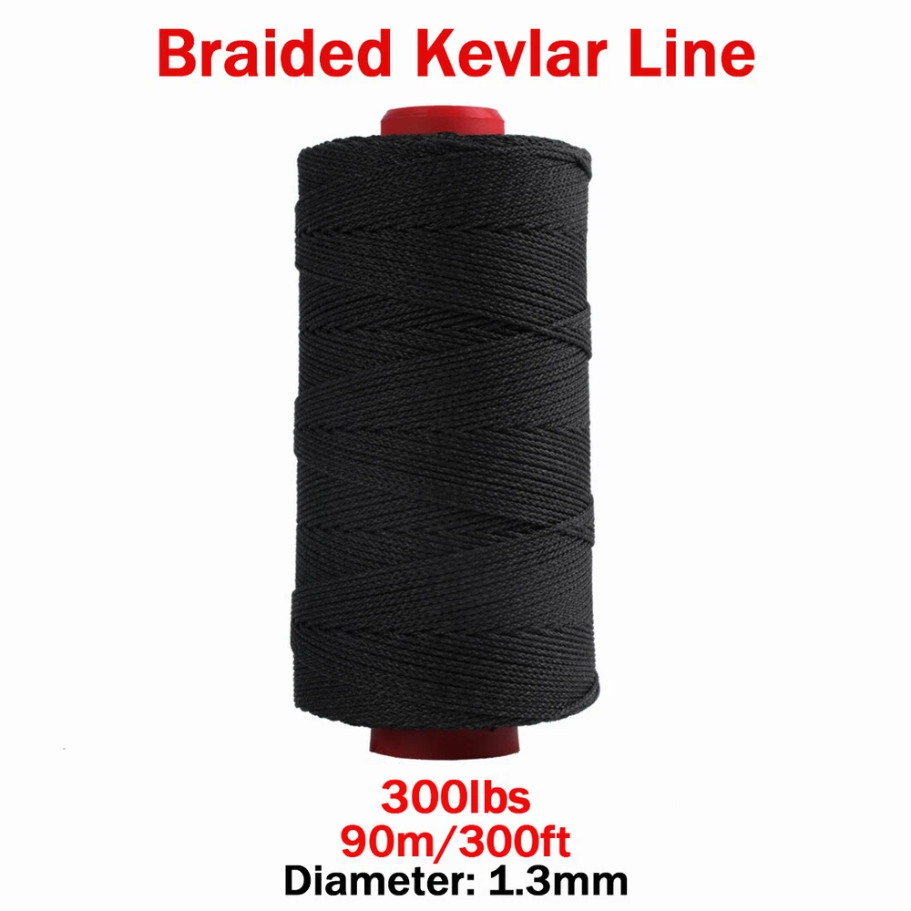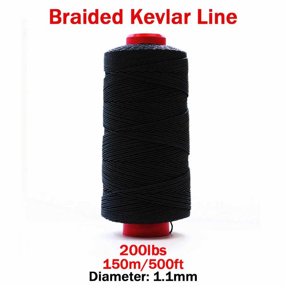 50lb-1500lb BRAIDED KEVLAR LINE Kevlar Fiber: The braided kevlar string is made of 100% kelvar fiber which is of high strength, high harness, high toughness and high abrasion resistance. Construction of Braid: Multi-strands interweaving process makes the string / cord much more durable, and it won't unravel like twisted line. Tough String: Every kevlar fiber is of high tensile strength. It exerts much higher strength in the same diameter. Cut-Resistance: One of the best advantages of Kevlar string. It helps avoid many unexpected string snaps which happen a lot in binding and fastening objects with sharp edges. Application: We provide strings from 100lb to 1500lb to meet different requirements, like, fishing, camping / hiking equipment fastening, usual outdoor line, plant support, gardening work, decoration hanging, creative projects, etc. Strength - Diameter - Weight per Meter: Approximately ±2~3% deviation exists in measurement. AMAZING Black COLOR! Great for outdoors Light weight, high tensile strength and small diameter make Kevlar cordage a great choice for below activities: Kites Flying String / Fishing Assist Line Large Model Rocket Cord / Speargun Shooting Line Camping Tarp Ridge Lines / Ultralight Backpacking Climbing / Rigging Sling / Survival Gear / Emergency Repair Cord Hiking Equipment Fastening / Tent Guy Lines Plant support / Arborist accessories Gardening Work / Decoration Hanging / Mason's line / Creative projects, etc. Notice:Around 90% of original strength is the safety working load. It‘s testing result from line factory.