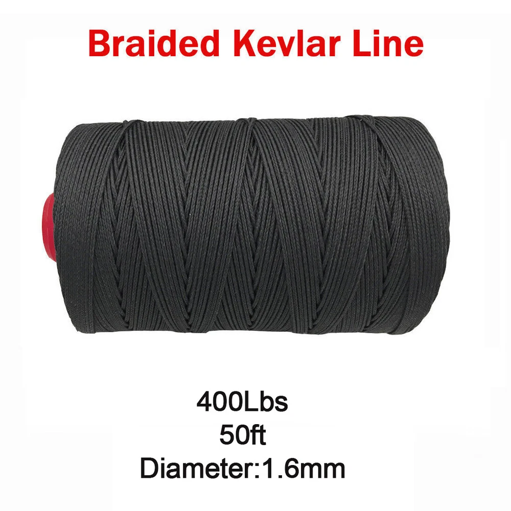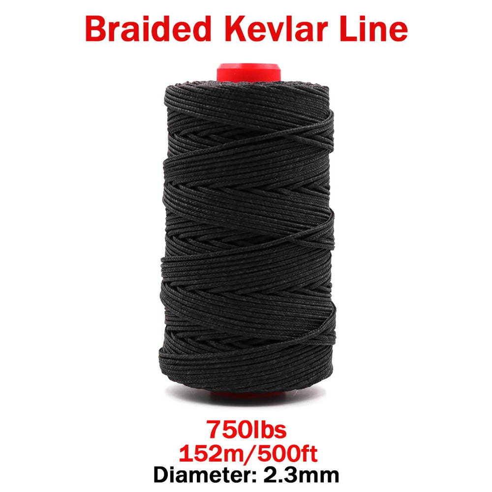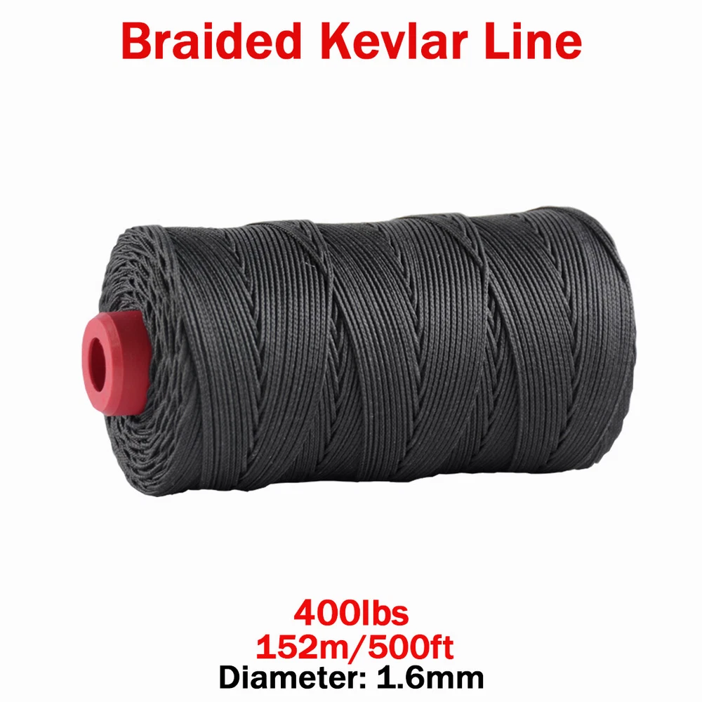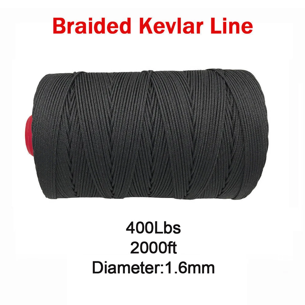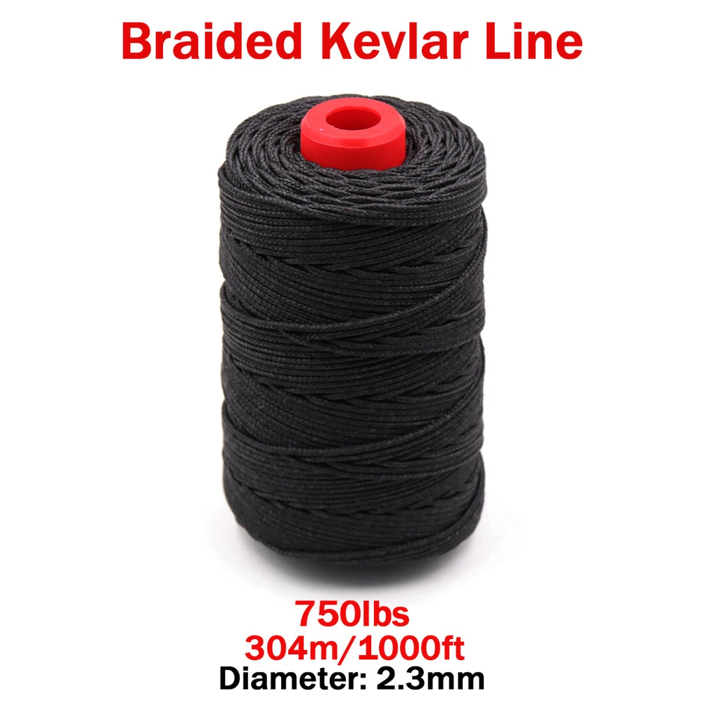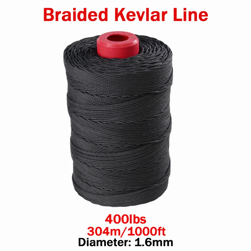 50lb-1500lb BRAIDED KEVLAR LINE Kevlar Fiber: The braided kevlar string is made of 100% kelvar fiber which is of high strength, high harness, high toughness and high abrasion resistance. Construction of Braid: Multi-strands interweaving process makes the string / cord much more durable, and it won't unravel like twisted line. Tough String: Every kevlar fiber is of high tensile strength. It exerts much higher strength in the same diameter. Cut-Resistance: One of the best advantages of Kevlar string. It helps avoid many unexpected string snaps which happen a lot in binding and fastening objects with sharp edges. Application: We provide strings from 100lb to 1500lb to meet different requirements, like, fishing, camping / hiking equipment fastening, usual outdoor line, plant support, gardening work, decoration hanging, creative projects, etc. Strength - Diameter - Weight per Meter: Approximately ±2~3% deviation exists in measurement. AMAZING Black COLOR! Great for outdoors Light weight, high tensile strength and small diameter make Kevlar cordage a great choice for below activities: Kites Flying String / Fishing Assist Line Large Model Rocket Cord / Speargun Shooting Line Camping Tarp Ridge Lines / Ultralight Backpacking Climbing / Rigging Sling / Survival Gear / Emergency Repair Cord Hiking Equipment Fastening / Tent Guy Lines Plant support / Arborist accessories Gardening Work / Decoration Hanging / Mason's line / Creative projects, etc. Notice:Around 90% of original strength is the safety working load. It‘s testing result from line factory.
