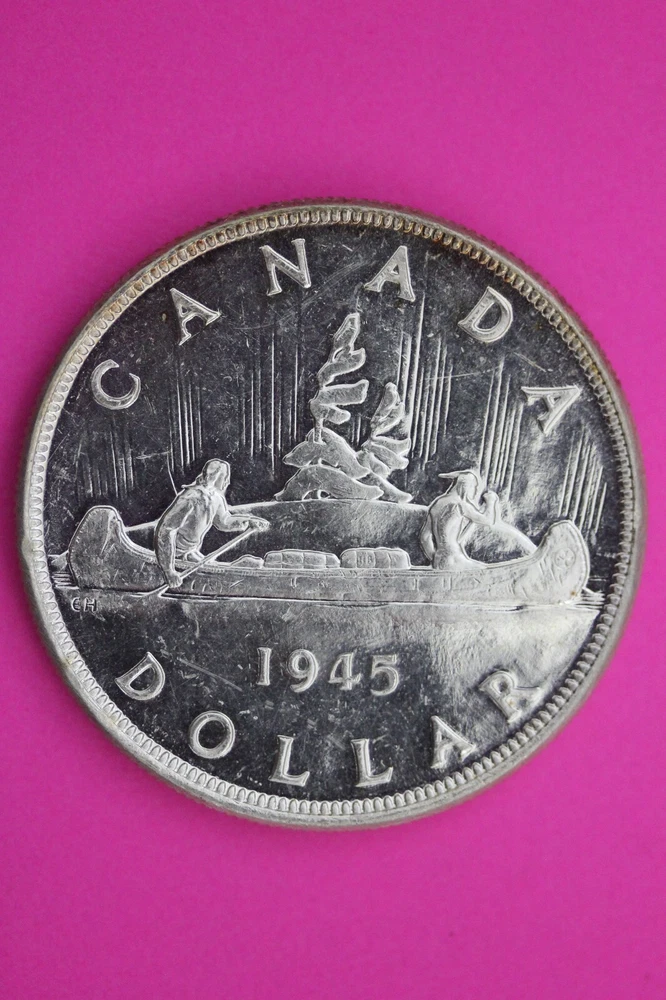 Certification Number: na Composition: Silver Fineness: 0.800 Precious Metal Content per Unit: .6000oz Certification: Uncertified Strike Type: Business Brand/Mint: Royal Canadian Mint Coin: Silver Dollar Year: 1945 Grade: Ungraded Country/Region of Manufacture: Canada