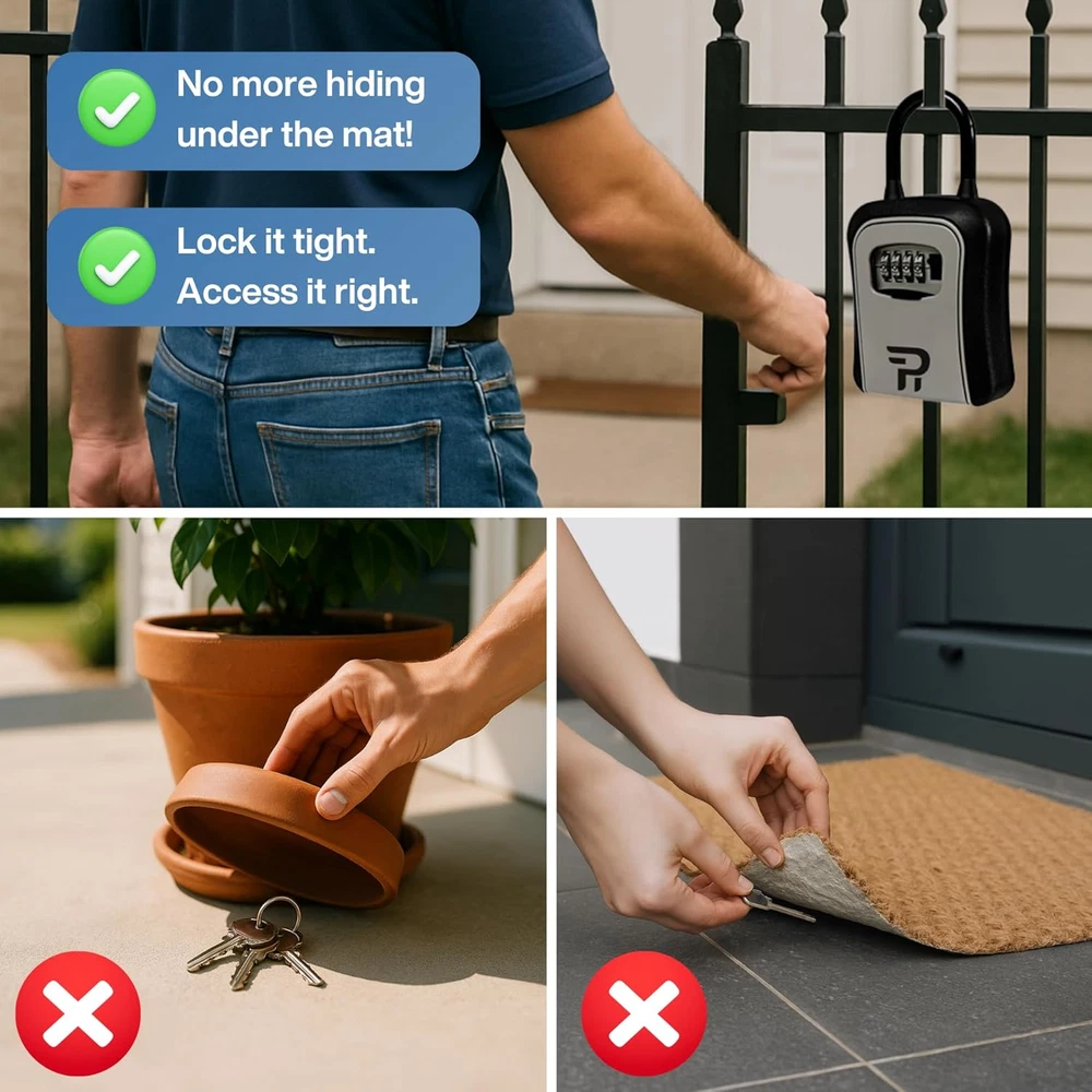 Store New Arrivals Add to Favorite View Feedback Contact Key Lock Box for outside - Combination Realtor Lockbox for House Keys Outdoor Description Item model number RRLB00001 Style Portable 2-PACK Batteries Included? No Number of Pieces 2 Batteries Required? No Finish Matte Material Aluminum, Stainless Steel, Zinc Installation Method Wall-Mounted Model Name Key Lock Box Finish Type Matte Item Package Quantity 1 Item dimensions L x W x H 4.7 x 3.5 x 1.6 inches Item Weight 2 pounds Lock Type Electronic Special Features Lockable Special Feature Lockable Part Number RRLB00001 Mounting Type Wall Mount Color Gray Shape Rectangular Recommended Uses For Product Outdoor Included Components Instructions Product Dimensions 4.7 x 3.5 x 1.6 inches Size Large Durable Lockable Keybox: Our lockbox is built with high grade rust and corrosion-resistant aluminum alloy and heavy duty stainless steel to the highest quality standards and tough enough to withstand hammering, sawing, and prying. Large Storage Capacity: At least 5 house or car keys can be locked in this mountable box as well as fob, credit cards and USB thumb drives. It is suitable for outdoor and indoor use and can be used for emergency access or family, pet sitters and friends keyless entry to apartment, garage, garden, classroom, factory, company, store, college, dorm, vacation home, and etc. Easy Installation and Operation: Included all necessary mounting hardware consisting of 4 screws and 4 nylon expansion plugs as well as instructions. Simply insert the screws and plastic expansion plugs and drill them to the wall or other hard surface and make sure it is mounted tight. The lock door is easy to open when you use the right numbers. Safe and Secure Locker: Our adjustable 4-digit combination lock, which is made of zinc alloy, allows you to set your own combo code with 10000 personalized passcode. It also includes protective cover to hide and protect dials from dust, rust, sunlight, rain and snow. Reliable Support: Need help anytime? Just reach out—we’re here to assist you, no matter when you bought your lock box. Product description ABOUT US We offer the best prices around on high quality products. Our E-store includes media such as books, movies, music and games while offering electronics, toys, sporting apparel, clothing, tools, general home, garden items and more. SHIPPING We are always working hard to ensure your package arrives as soon as possible. Please understand that some factors like weather, high postal traffic, and the performance of shipping companies are outside of our control. We offer free shipping to the lower 48 states and ship within 2 business days of payment, usually sooner. We do not accept P.O. Boxes. Please provide a physical address. RETURNS We offer a 30-Day Return Policy on items which you are not completely satisfied with. You have the option for a full-refund or an exchange of the item. No returns are available on items shipped outside of the USA. PAYMENT We accept PayPal. CONTACT US This page content is yet to come Please ad us to your favorite seller and visit again later Thank You CUSTOMER SATISFACTION We try our very best to make sure every customer is completely satisfied. If there's a problem, message us! We're happy to help.