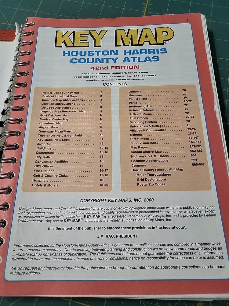 The "Key Map Atlas Spiral Book Houston Harris County Texas 42nd Edition" is a book authored by Harris. It likely serves as a detailed map and guide for navigating Houston and Harris County in Texas. This book, being the 42nd edition, is valuable for those interested in exploring the area and its surroundings.