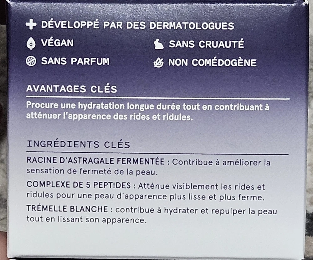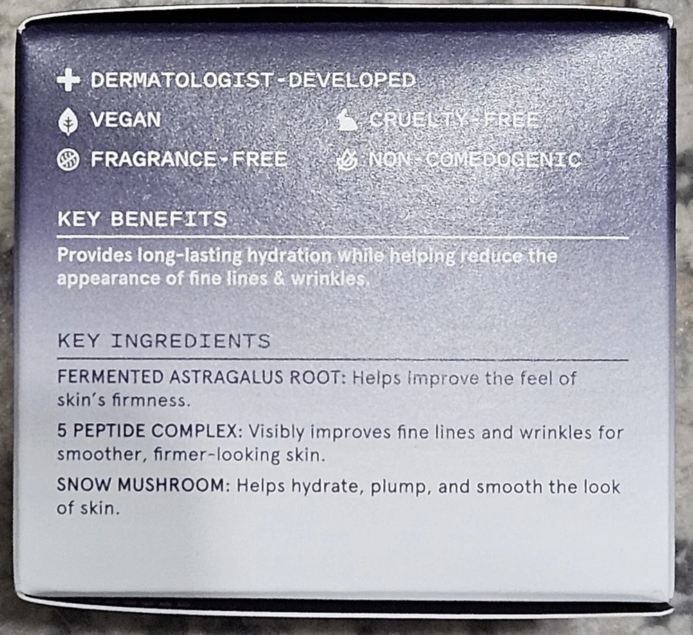Water, Glycerin, Hyaluronic Acid, Astragalus, Snow Mushroom, Peptides