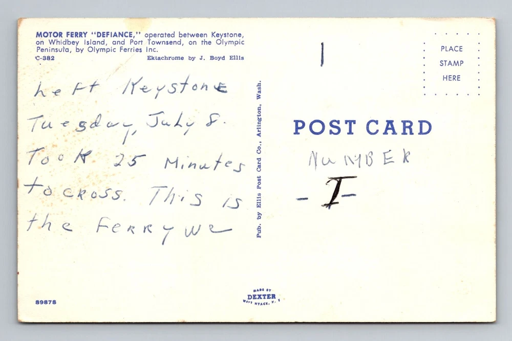 Keystone WA-Washington, Motor Ferry Defiance, Olympic Vintage Postcard