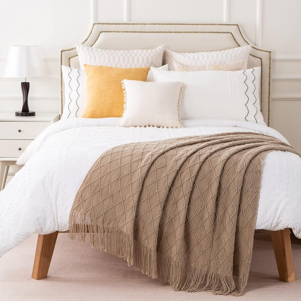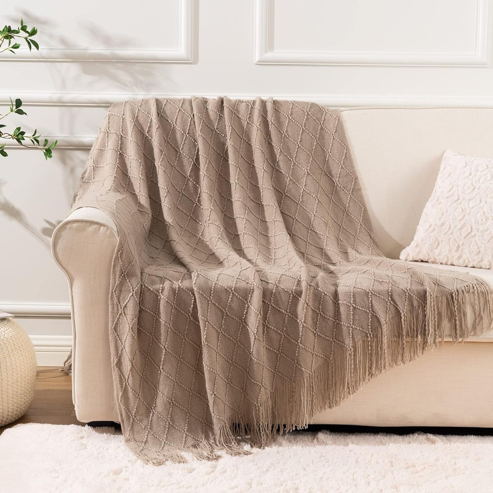 Khaki Throw Blanket, Beige Throw Blanket for Couch, End of Bed Throws Spring Decorative Large Throw Tan Beige, 52"x80" SIZE & MATERIAL – Woven of environmental and 100% high quality acrylic to create a soft and cozy silky touch. This throw blanket is breathable, anti-shed and anti-sunlight with excellent fastness, measures 52 x 80 in, weighs lbs. COLORFUL – Different color choices for festivals, ages and people. You can get a perfect decoration for your home. Red throw blanket for Christmas, orange throw for Fall decoration, yellow and green throw for St. Patrick’s Day, pink throw for Valentine’s Day. *The color would be different due to screen display setting. STYLISH – Skillfully crafted with geometric pattern and rolled fringed edges for a stylish beautiful finish. This farmhouse fringe throw blanket is suitable for all indoor and outdoor spaces like living room, bedroom, camping, hotel, park. VERSITILE – Battilo fringe throw can satisfy daily usage. It’s perfect for snuggling up on couch and sofa. This afghan style blanket can be used as a bed scarf or bed runners. You can use it as a shawl when you are in garden with families and friends. EASY CARE & SATISFACTION SATISFACTION GUARANTEED- Machine wash colors separately wash in cold water, gentle cycle, tumble dry low, low iron. Battilo SATISFACTION GUARANTEEs to provide 1- return and service & life-time free customer service. , better home The fall is coming.
