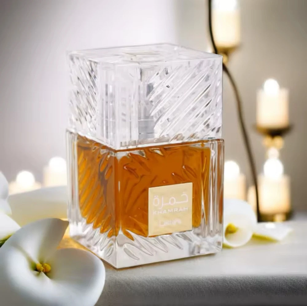 Khamrah Latefa ((ORIGINAL)) Parfum Spray For Unisex New In Box (From ((Dubai)). Khamrah by Lattafa Perfumes is a luxurious and captivating aromatic spicy fragrance designed for both men and women. This enchanting scent opens with a warm and inviting blend of cinnamon, nutmeg, and bergamot, creating a rich and spicy introduction that instantly intrigues the senses. At the heart, a sensual fusion of dates, praline, tuberose, and mahonial adds depth and sweetness, balancing the composition with an elegant gourmand touch. The base is a masterpiece of warmth and sophistication, featuring vanilla, tonka bean, benzoin, myrrh, amberwood, and akigalawood, leaving a lingering, velvety trail that exudes confidence and allure. Perfect for evening wear, Khamrah is an irresistible fragrance that embodies mystery, elegance, and timeless charm.