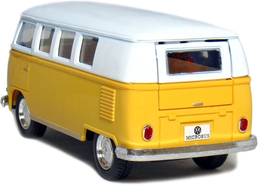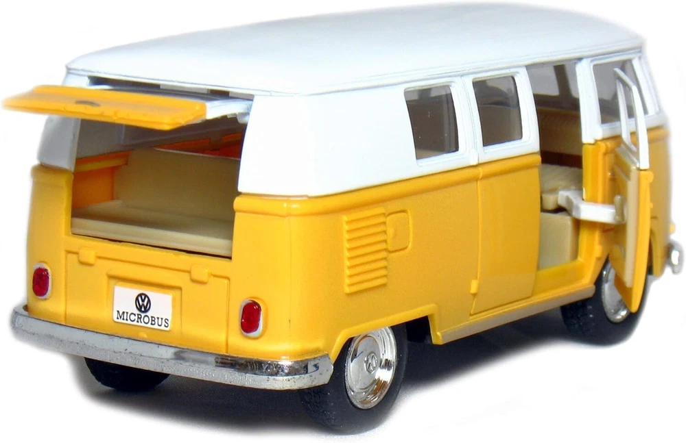 KiNSMART 5in Die-cast 1962 VW Classic Bus 1/32 Scale (Yellow), Pull Back n Go Action. For unisex Description: 5" Die-cast Metal Car with Plastic Parts 1/32 Scale Pull Back n Go Action Doors Openable Official Licensed Product Not Suitable for Children Under 8 Years Old