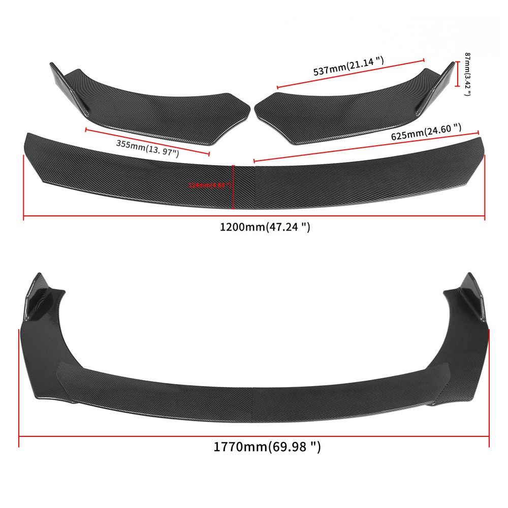 Front Bumper Lip Specification: -Type:Front Lip Chin Bumper Body Kits -Material:ABS -Color:Carbon Fiber -Weight:1768g -Placement on Vehicle:Front;;Lower -Fitment Type:Performance/Custom Feature: -Direct Fit. -Easy install and durable use. -Great quality and great Fitment. -Correct Connector No cutting or splicing. -Strict quality control standards to Build and test. -It'll give you a sporty look without making it too aggressive. -Light in weight and enduring, different optical line comes from different points of view. *Instruction Not Included, Professional Installation Is Highly Recommended.* Strut Rods ★ Length: The length can be adjustable from 5.9" to 11" (200-330mm) ★ Material: Stainless Steel ★ Quatity: 2 x Stainless Steel Bumper Lip Splitter Tie Rod Bars. ( Stainless steel has weldability, corrosion resistance and heat resistance.) ★ Position: This exquisite and compact lever is mainly fixed on the body components (front and rear surround, skirt, head and tail lip), and can also be installed in the car center console or interior trim panel ★ Require: Product will require drilling holes into the bumper and/or lip/diffuser to attach safely to the vehicle. Package Included: 1set Front Lip Chin Bumper Body Kits 2 X Strut Splitter Rods On Sep 28, 2024 at 11:27:51 PDT, seller added the following information: On Jan 8, 2025 at 03:24:16 PST, seller added the following information: