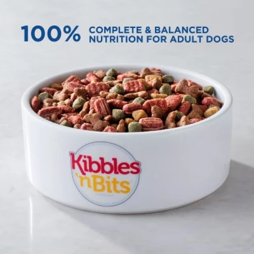 Important Note for Our Valued Customers: To offer you the best prices with free shipping, we occasionally experience shipping delays. If this happens, we’ll notify you immediately, issue a full refund, and invite you to place a new order at your convenience. To keep costs low, we sometimes reuse branded packaging boxes for shipments—we appreciate your understanding if you receive your order in repurposed packaging. Rest assured, all products we sell are 100% brand new, unopened, and freshly manufactured, including pet food and human-grade items, with a minimum 8-month shelf life remaining. If any issues arise, please contact us first—we’re committed to resolving them quickly. If you’re not completely satisfied, we offer a full refund with no hassle. Thank you for your trust and support! Description Make your dog feel like every meal you serve is the Best. Meal. Ever… with Kibbles ’n Bits Savory Bacon & Steak Flavor dry dog food. With meaty bits so chewy and kibbles so deliciously crunchy, it’s a dance party of flavor and texture in every bowl! Our signature mix is made with irresistible steak and bacon flavors for delicious nourishment in every bite. Plus, this meal contains complete and balanced nutrition for adult dogs, so you can feel good about serving it again and again. highlights Contains one (1) 16-pound bag of dry dog food Complete and balanced nutrition for adult dogs of all sizes Deliciously crunchy kibbles with signature bits crafted with meat Bursting with irresistible bacon and steak flavor Proudly produced in USA from globally sourced ingredients Amount Guaranteed Analysis:: % Daily Value* Crude Protein (Min) 19 Crude Fat (Min) 8 Crude Fiber (Max) 4 Moisture (Max) 18 Calcium (Ca) (Min) 1 Phosphorus (P) (Min) 0.8 Zinc (Min) 125mg Vitamin A (Min) 5100IU Vitamin D (Min) 500IU Energy * Percentage of Daily Values are based on a 2,000 calorie diet. Ingredients: corn, soybean meal, beef and bone meal, ground wheat, animal fat (bha used as preservative), corn syrup, wheat middlings, water sufficient for processing, animal digest, propylene glycol, salt, hydrochloric acid, potassium chloride, caramel color, beef, sorbic acid (used as a preservative), choline chloride, vitamins (vitamin e supplement, niacin, d-calcium pantothenate, vitamin a supplement, riboflavin supplement, thiamine mononitrate, vitamin d3 supplement, vitamin b12 supplement, pyridoxine hydrochloride, folic acid, biotin), sodium carbonate, minerals (ferrous sulfate, zinc oxide, manganous oxide, copper sulfate, calcium iodate, sodium selenite), dl-methionine, beef stock, hydrolyzed corn protein, calcium sulfate, titanium dioxide (color), natural flavor, red 40, bacon broth (source of bacon flavor), lactic acid, red 40 lake, natural beef flavor (source of steak flavor), hydrolyzed corn gluten, natural smoke flavor, hydrolyzed soy protein, yellow 5, bha (used as a preservative), blue 2 lake, yellow 6 lake, hydrolyzed wheat gluten, blue 1, yellow 6
