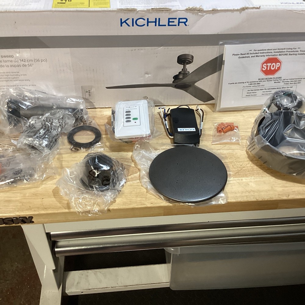 Kichler 300356 Ried 56" 3 Blade Indoor / Outdoor Ceiling Fan - Anvil Ironi Open Box Free shipping