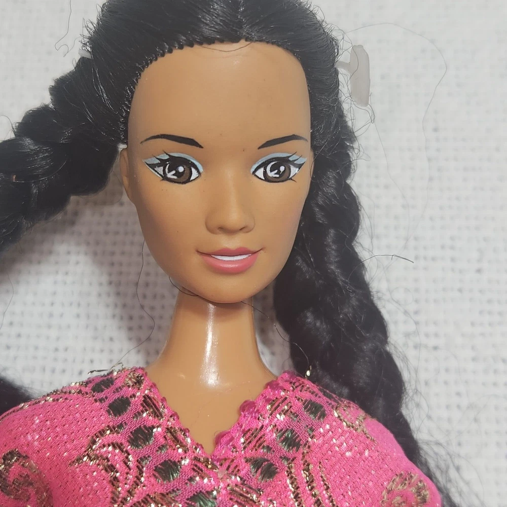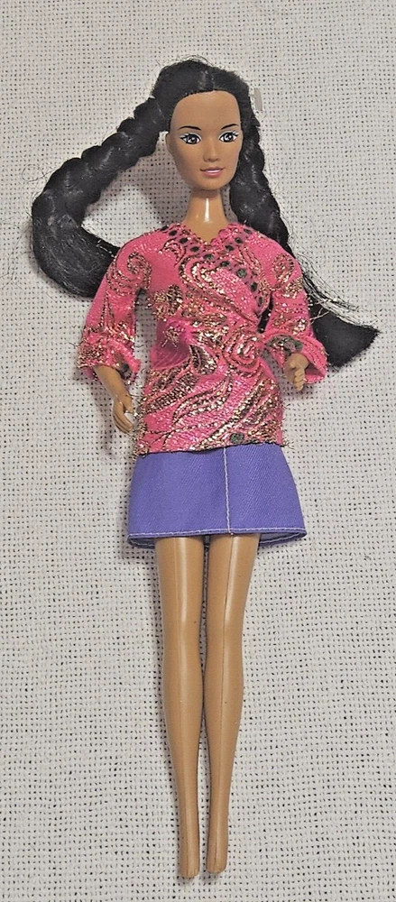 This Kid Kore doll is a rare find for collectors and enthusiasts alike. With its medium dark complexion, straight black hair, and brown eyes, this 12 inch girl doll is a perfect representation of Native American culture. The doll comes with three removable clothes and features a hard plastic, cloth, plastic, and rubber material. It was manufactured in China in 1994 and is an original Kid Kore product. The doll is part of the Kid Kore series and is perfect for all occasions. It is a single unit and is sold without packaging. This Native American doll is not a Barbie and is a great addition to any collection.