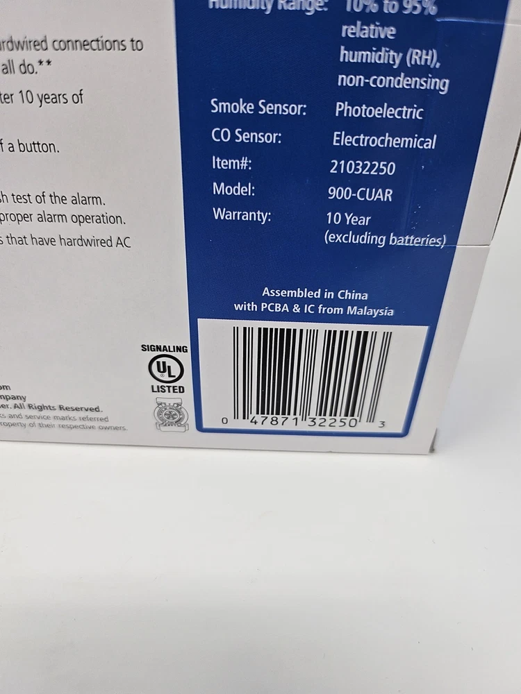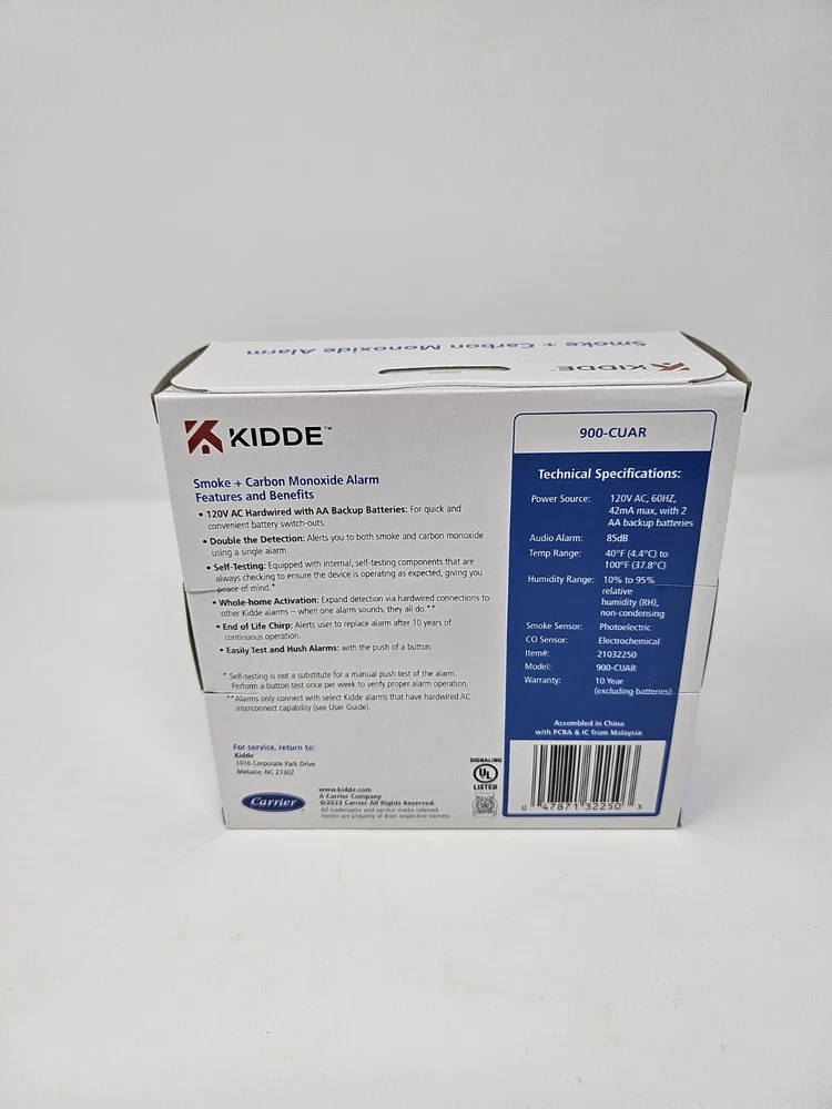 Color: White Type: Smoke & Carbon Monoxide Detector Alarm UPC: 0047871322503 MPN: 21032250 gtin13: 0047871322503 Features: Battery Backup Model: 900-CUAR Brand: Kidde