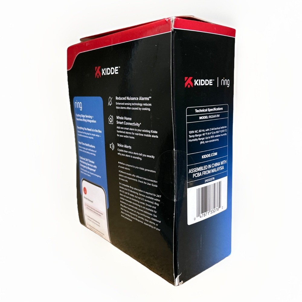 Kidde Wired Smart Smoke Alarm with Ring Alerts Model RGSAR-RW Open Box
