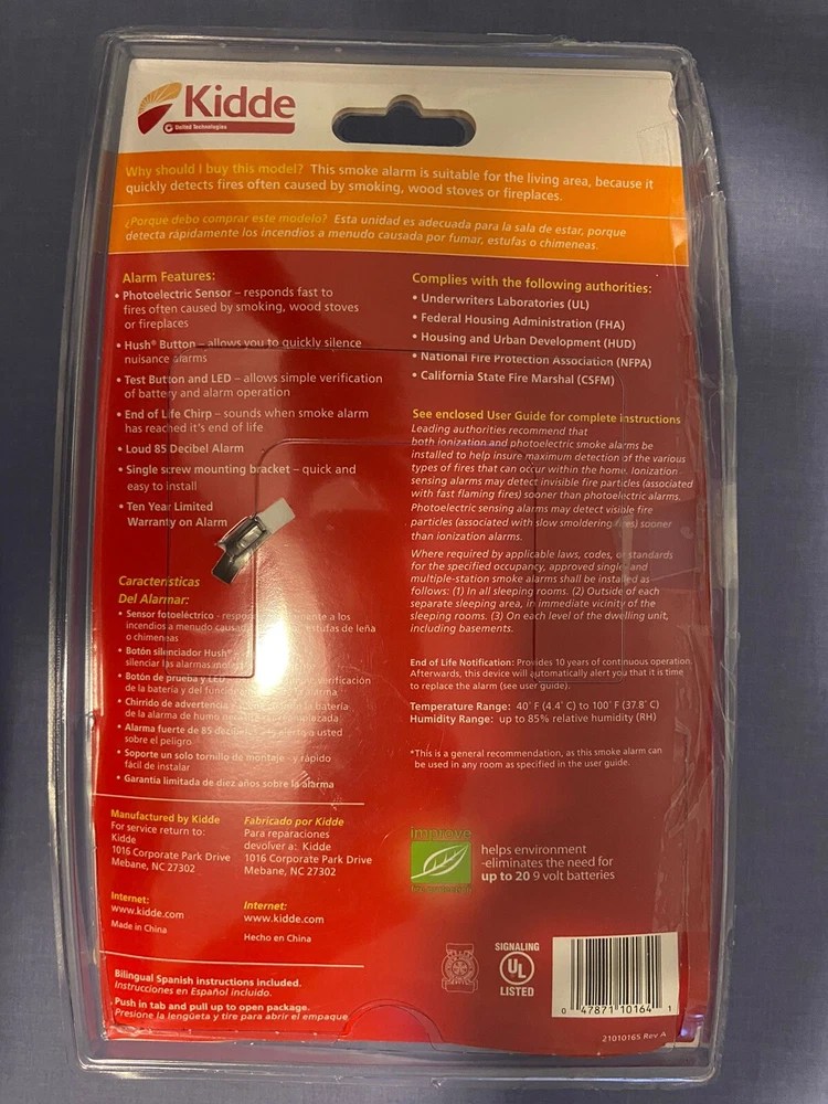 Kidde Worry free battery powered photo electric smoke detector. Shipped with USPS Ground Advantage.