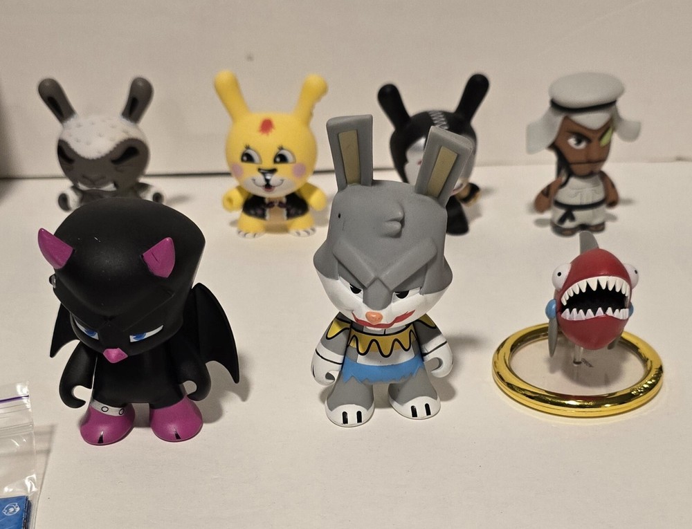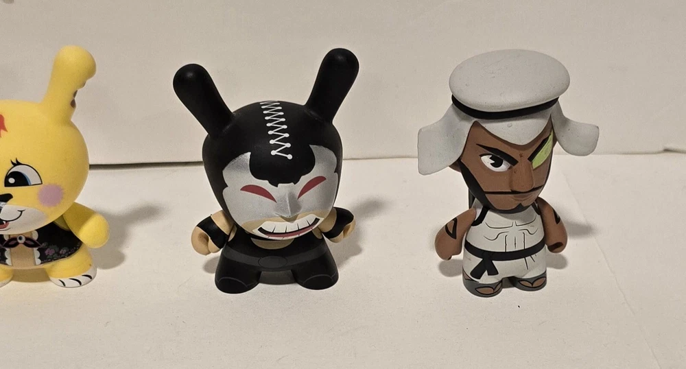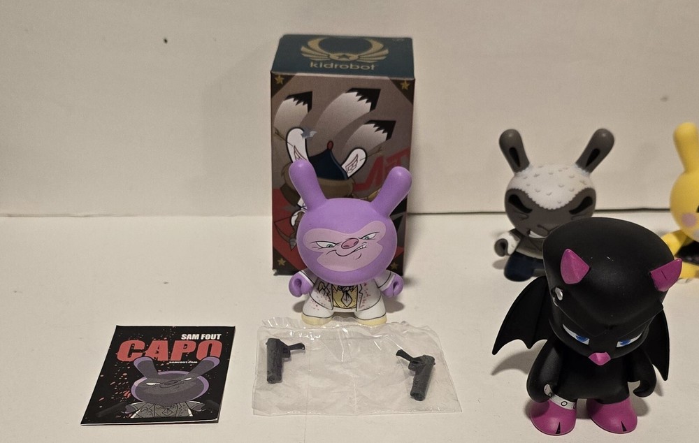 This Kidrobot Dunny Art of War/Looney Tunes Capo by Sam Fout is a must-have for fans of the iconic animated franchise. The action figure stands at 3 inches tall and features a multicolor design made of high-quality vinyl material. The figure is part of a series of 8 Dunnys, each with its own unique design and accessories. The character of Sam Fout is a rabbit species from the Looney Tunes TV show, known for his involvement in mixed martial arts. This original item is not signed and was manufactured in 2016 by Kidrobot, a well-known brand in the action figure industry. The item includes a gun accessory and is suitable for ages 15 and up. Add this rare and unique item to your collection today!