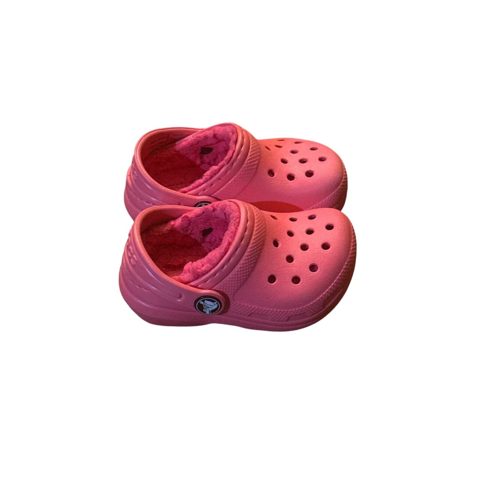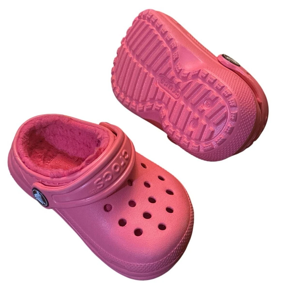 These Kids’ Crocs Classic Fuzz Lined Clogs in pink, size 5C, are in excellent used condition (EUC). They may show minor signs of wear, but nothing that affects functionality. Please review photos and ask questions if needed—it’s your job to ensure they’re right for you! Features: • Croslite™ upper with round toe clog style • Slip-on with pivoting heel strap • Cozy faux-fur lining for warmth and comfort • Customizable with Jibbitz™ charms • Dual Crocs Comfort™ and Croslite™ foam construction • Non-marking outsole for grip on multiple surfaces Retail 45$