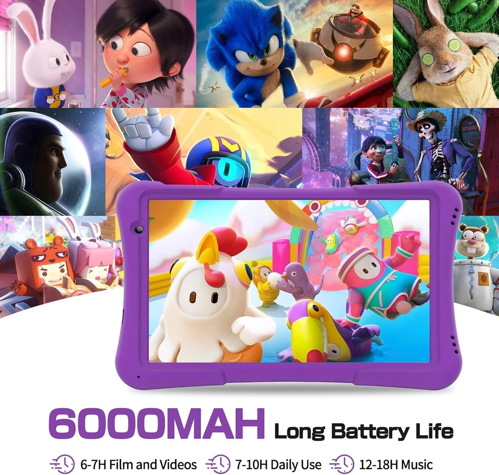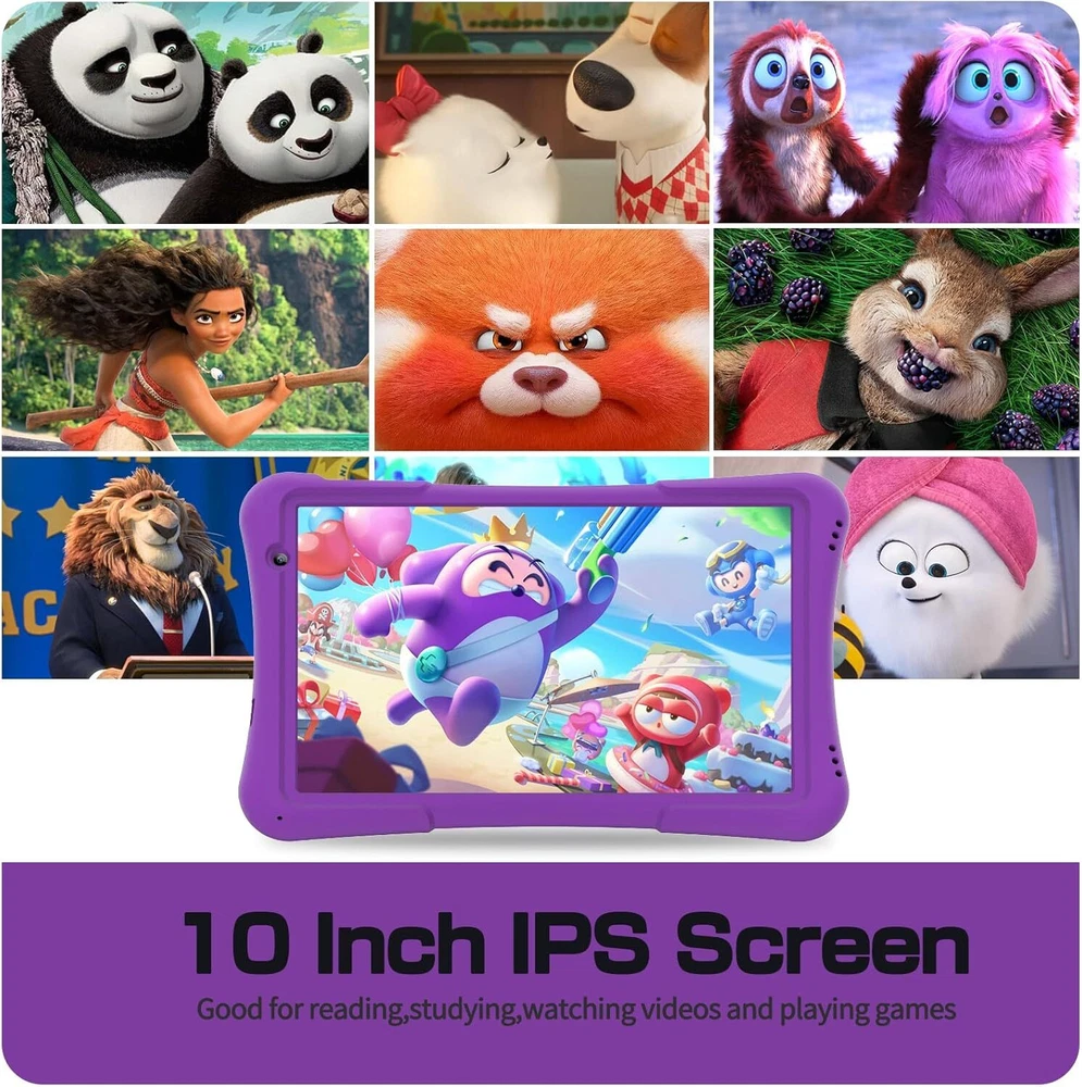 Kids Android Tablet 10 Inch,Toddler Tablets with Parental Control,10.1'' IPS HD Display,Dual Camera,6000mAh,Bluetooyh,Tablets for Kids Ages 3-7(Purple) Product Details Brand: NEWISION Model Name: M10 Memory Storage Capacity: 32 GB Screen Size: 10.1 Inches Display Resolution Maximum: 1280*800 Pixels 【2024 Release 10 inch Kids Tablet】NEWISION Kids Tablet for kids offer a full-feature tablet with 1.6Ghz Quad-Core 2GB+32GB android 12 system,which offering high speed and responsiveness to run educational apps and play light games.Toddler Tablet equiped with 1280x800 HD display,large battery capacity 6000 mah,dual camera,wifi,bluetooth.Support all Languages with the Spanish Included. 【Kids Tablet with Parent Control】With Pre-installed App for kids,that is quite convenient for parents to control the content or time while their childs are using this kids tablet.Parents not only can set time limitation for kids and check how much time kids spend on specific Apps,but also can select variety of kids-friendly content in it such as Kid's learning, Kids video shows,Art and Craft, Kids TV, Educational games. 【Toddler Tablet with Case and Stand】This android tablet come with nice silicone case and stand,which provides protection againest drop,dust,bumps etc..Adjustable stand on the back of the case allows children to go hands-free for watching videos,video chatting,music listening,children can take it anywhere, no matter in your lanyard,car or outside,that is quite suitable for more kids. 【Large Storage and Long Lasting Battery Life】Our 10 inch kids tablet build in 32GB storage and expandable up to 512GB SD Card, which have enough storage to store more fun Cartoon Shows, Learning Videos, Educational games, Story eBooks, etc. The 6000mAh battery can last 8-12 hours in normal use, making it portable and ideal for long term flights and road trips. 【Eye Protection HD Screen】10 inch large Screen tablet provieds a premium IPS 1280x800 HD screen,which is designed with low blue light technology. Enter“Eye Comfort”and “Reading Mode” with one click. The tablets screen can help kids prevent digital eye strain,headaches,sleep issues,fatigue,and so on.Kids can enjoy themselves with comfort eyes experience. Kids Tablet 10 Inch Tablet for Kids 10 Inch Kids Tablet 10 Inch with Case Included Kids Tablet with Case Included Kids Tablet Ages 8-12