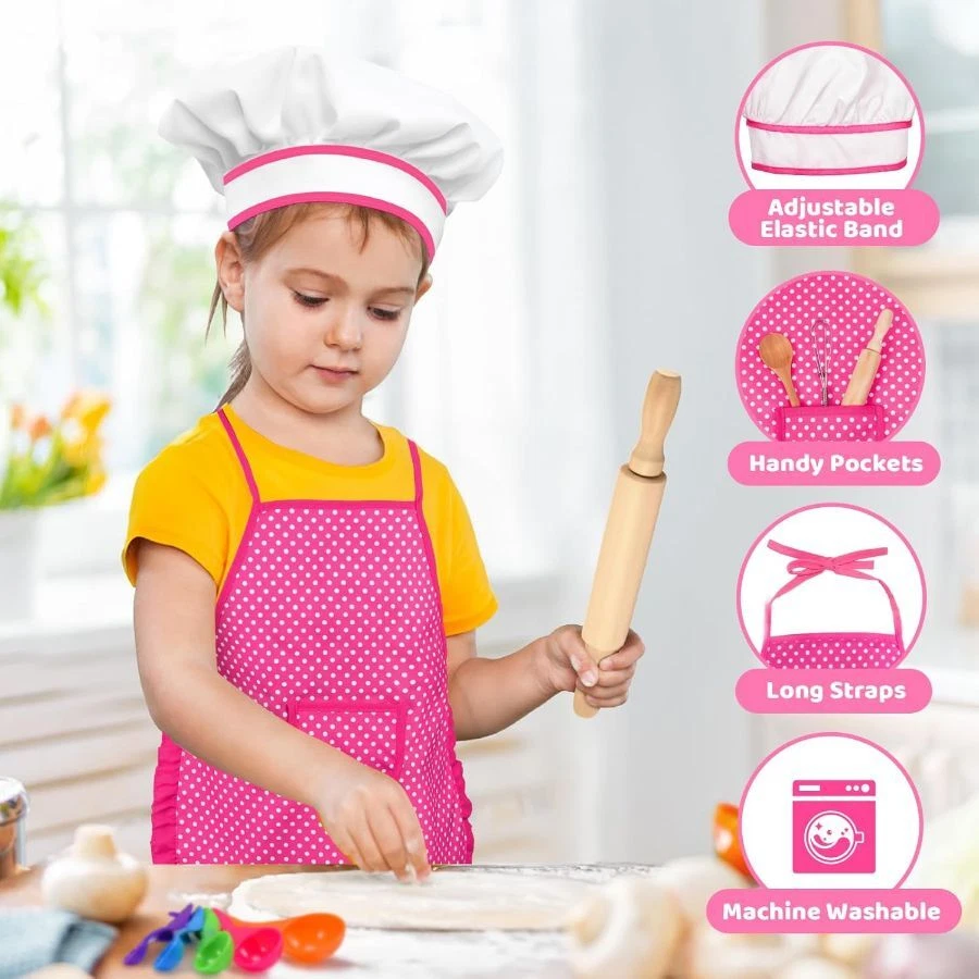 Kids Apron for Girls Kids Cooking Set, Toddler Apron, 20Pcs - with Cookbook