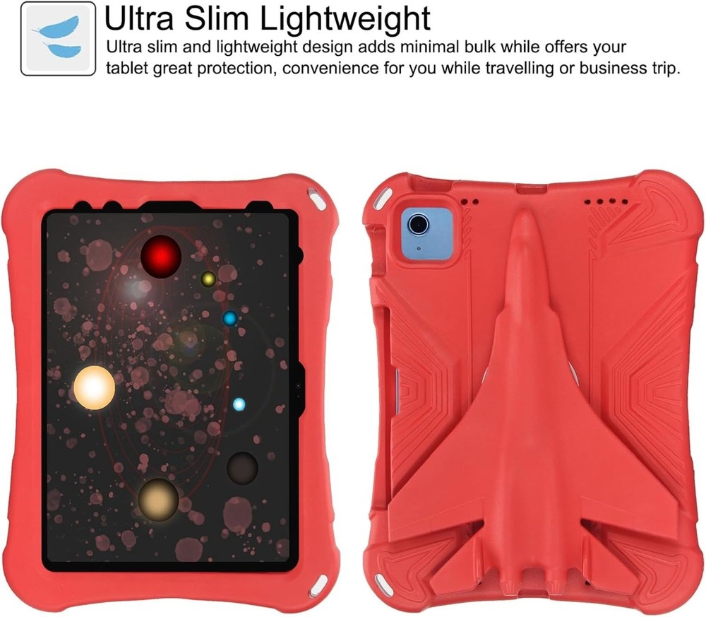 Features: 【Full Protection】 Made of durable, child-safe, lightweight, wear-resistant, shock-absorbing and heavy duty EVA Foam, protects your tablet from accidental drops and bumps. 【Unique 360°Airplane Stand】 Built-in 360 degree rotatable AIRPLANE kikstand, makes easy for kids to carry it around and hands-free viewing and comfortable typing. 【Precise Openings】 Easy access to all the controls and features. Perfect cutouts for speakers, cameras, ports. Also Raised edges keep screen and camera lifted to prevent surface scratches. 【Shockproof + Drop-proof】 Durable EVA foam enhanced drop protection with extra shock absorption to provide outstanding protection for the ultimate drop defense. 【Christmas Gift】High quality super sturdy light weight Non-toxic EVA protection case for kids. Lightweight,strong protection,easy to carry,environmentally safe,very suitable for children, boys, girls,kindergartens,schools.Great gifts for your baby kids children on Christmas. Package Included: 1 * EVA Foam Case ( Case Only, iPad, Pencil and Screen Prot ector Not Included ) Note: Because of different models, the holes of the protective case are also different. PLEASE CHECK THE MODEL OF YOUR IPAD ON THE BACK TO MAKE SURE IT MATCHES ONE OF THE MODEL NUMBERS IN THE TABLE BELOW Choose Model Name iPad Model Number Inch Year For iPad Mini 1/2/3/4/5 (7.9")-2012/2013/2014/2015/2019 A1432/A1454/A1455/A1489/ A1490/A1491/A1489/A1599/ A1600/A1550/A1538/A2133/ A2124/A2125/A2126 7.9 2012/2013/2014/2015/2019 For iPad 5/6(9.7"2017/2018) A1822/A1823/A1893/A1954 9.7 2017/2018 For iPad 7/8/9(10.2" 2019/2020/2021) A2197/A2198/A2199/A2200 /A2430/A2429/A2428/A2270 /A2602/A2603/A2604/A2605 10.2 2019/2020/2021 For iPad 10th Gen (10.9"2022) A2696/A2757/A2777 10.9 2022 For Apple iPad Air 1/2(9.7"2013/2014) A1474/A1475/A1476/A1566/A1567 9.7 2013/2014 For Apple iPad Air 3(10.5"2019) A2154/A2152/A2153/A2123 10.5 2019 For iPad Air 4/5 (10.9"2020/2022) A2316/A2324/A2325/A2072 /A2588/A2589/A2591 10.9 2020/2022 For iPad Pro 9.7" (2016) A1673/A1674/A1675 9.7 2016 For iPad Pro 10.5 (2017) A1701/A1709/A1852 10.5 2017 For iPad Pro 11" (2018/2020/2021/2022) A1979/A1980/A1934/A2013 /A2228/A2068/A2230/A2231 /A2301/A2377/A2459/A2460 /A2759/A2435/A2761/A2762 11 2018/2020/2021/2022