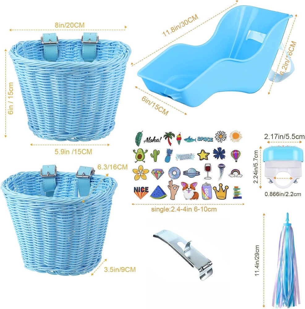 Free eBay listing template designed by dewiso.com Doll Bike Seat with 30 Pcs Stickers Decals Bike Basket for Kids Bike Handlebar Streamers Colorful Ribbons Tassel Daisy Bike Bell for Girls Boys Bike Accessories Christmas Kids Gift FREE AND FAST SHIPPING! About this item Lovely and Cute Bike Accessories: the bike decoration accessories kit contains 1 doll bike seat with stickers, 1 kid's wicker bike basket, 2 straps of colorful bike handlebar streamers, 1 bicycle bell and 30 pieces of lovely stickers, making kid's bicycle beautiful and attractive Practical and Strong Accessories: the wicker bike basket is hand woven with long lasting durability, which can hold water bottle, tissue, hat and other items when going out riding; The bike bell can deliver a crisp and clear ringtone, loud enough to catch the attention of pedestrians and remind them to make kid's way Attractive Bicycle Decoration: the bicycle basket streamers set will give your kid's bike a fresh look, the colorful bike handlebar streamers will dance along with the wind when riding the bike, attracting the attention of other people Ideal Gift: the kids bicycle decorations set can serve as an ideal gift for your kids on birthday, Christmas, Children's Day and more, they will be very excited to receive such a nice present; You can enjoy a happy and warm parent child cycling trip with your kids Fun to DIY: with the various stickers and decals, your kids, and you will have fun decorating the bikes with imagination and creativity, you can stick the decals on different places or combine different patterns to make your own beautiful bicycles Product We offer a 30-Day Return Policy on items which you are not completely satisfied with. You have the option for a full-refund or an exchange of the item. No returns are available on items shipped outside of the US . Shipping We offer Free Shipping to the US and ship within 2 business days of payment, usually sooner. We use UPS express shipping. That's why your products are usually delivered within 3 days . Contact We try our very best to make sure every customer is completely satisfied. If there's a problem , message us! We're happy to help. 24/7 live chat available.
