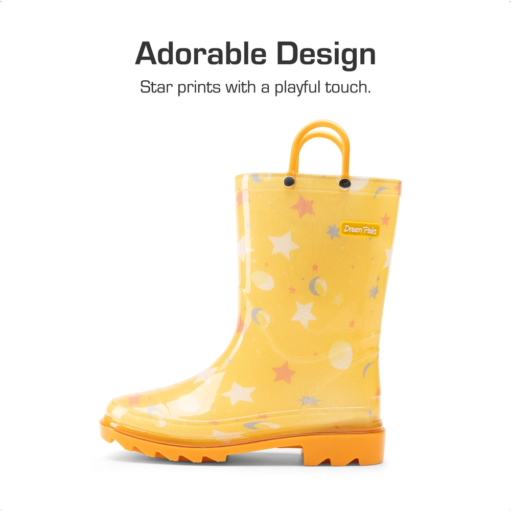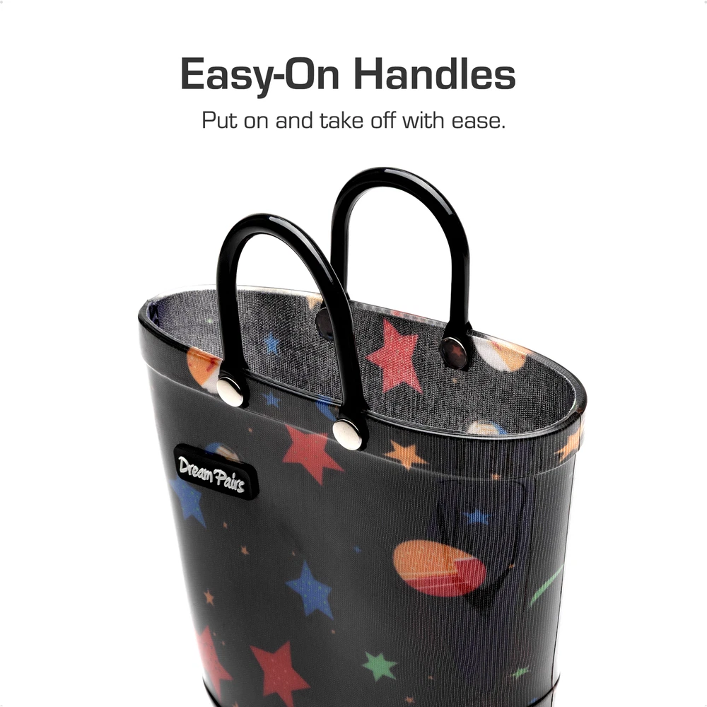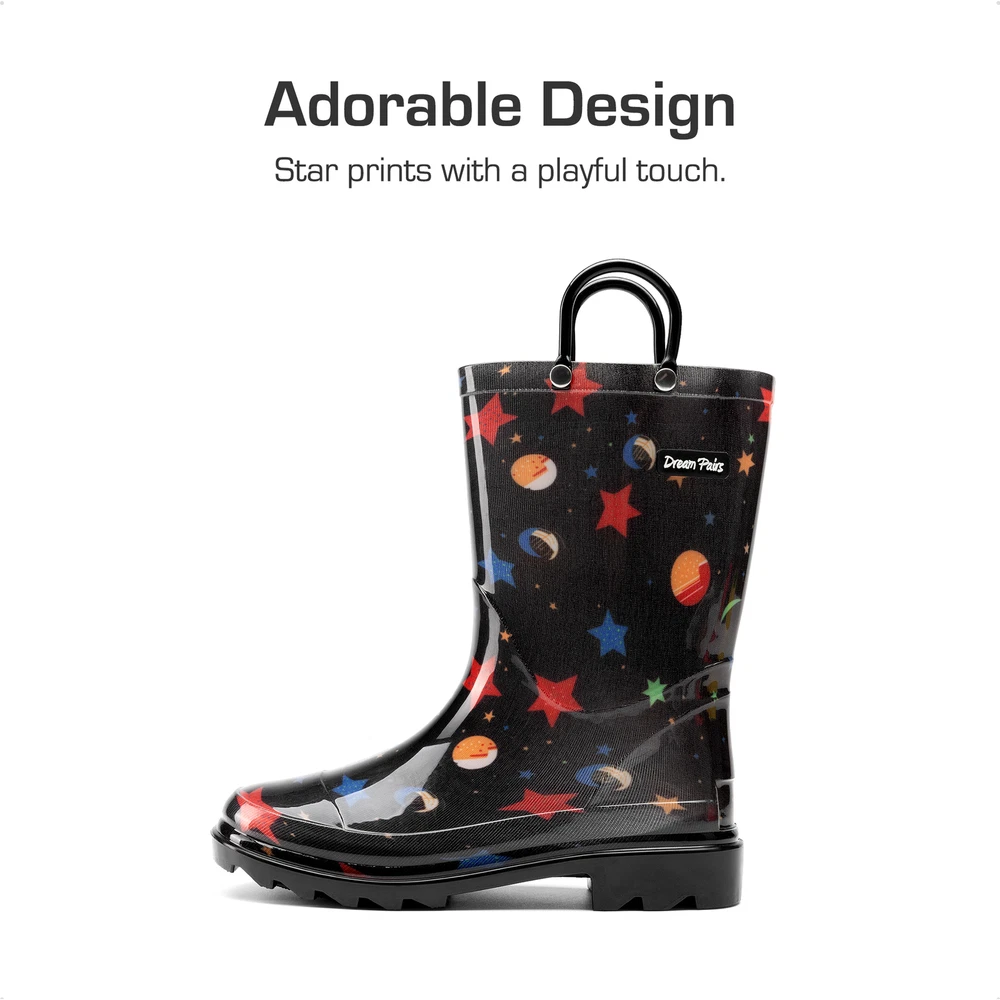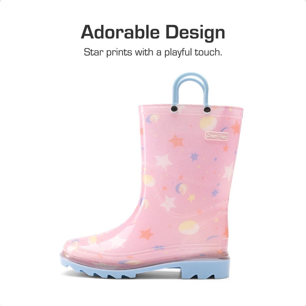 Kids Boys Girls Waterproof Pull-on Handles Rain Boots Rainy Day Walking Shoes
