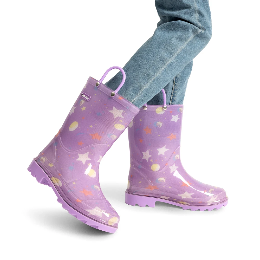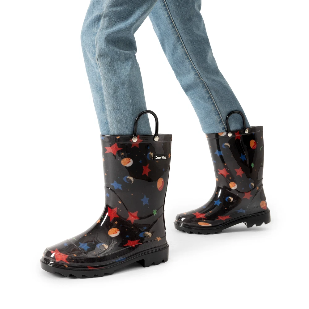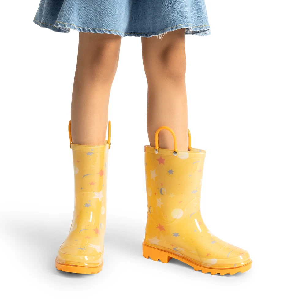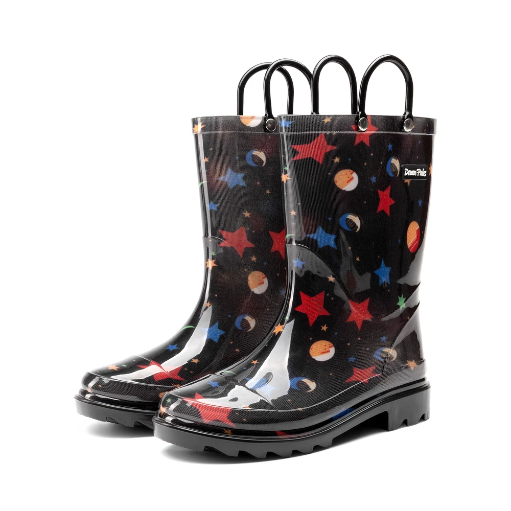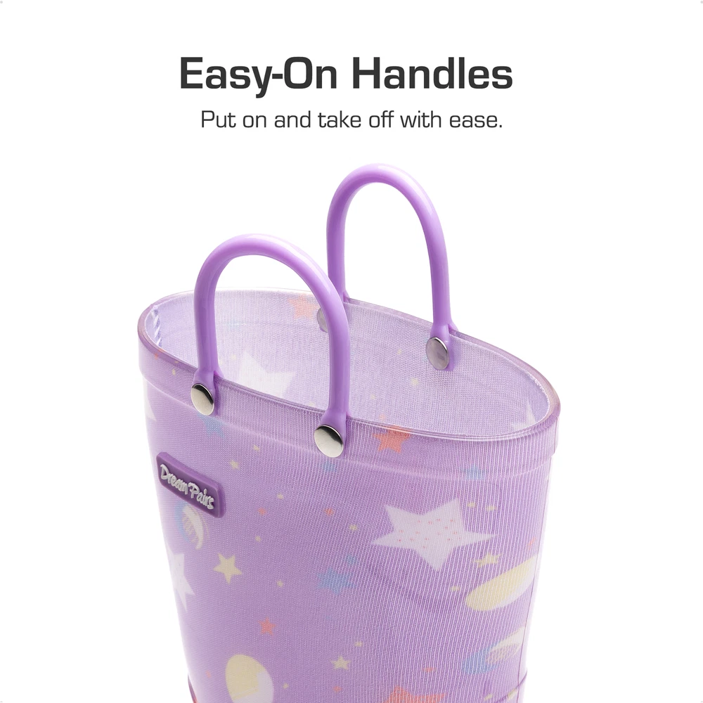 Kids Boys Girls Waterproof Pull-on Handles Rain Boots Rainy Day Walking Shoes