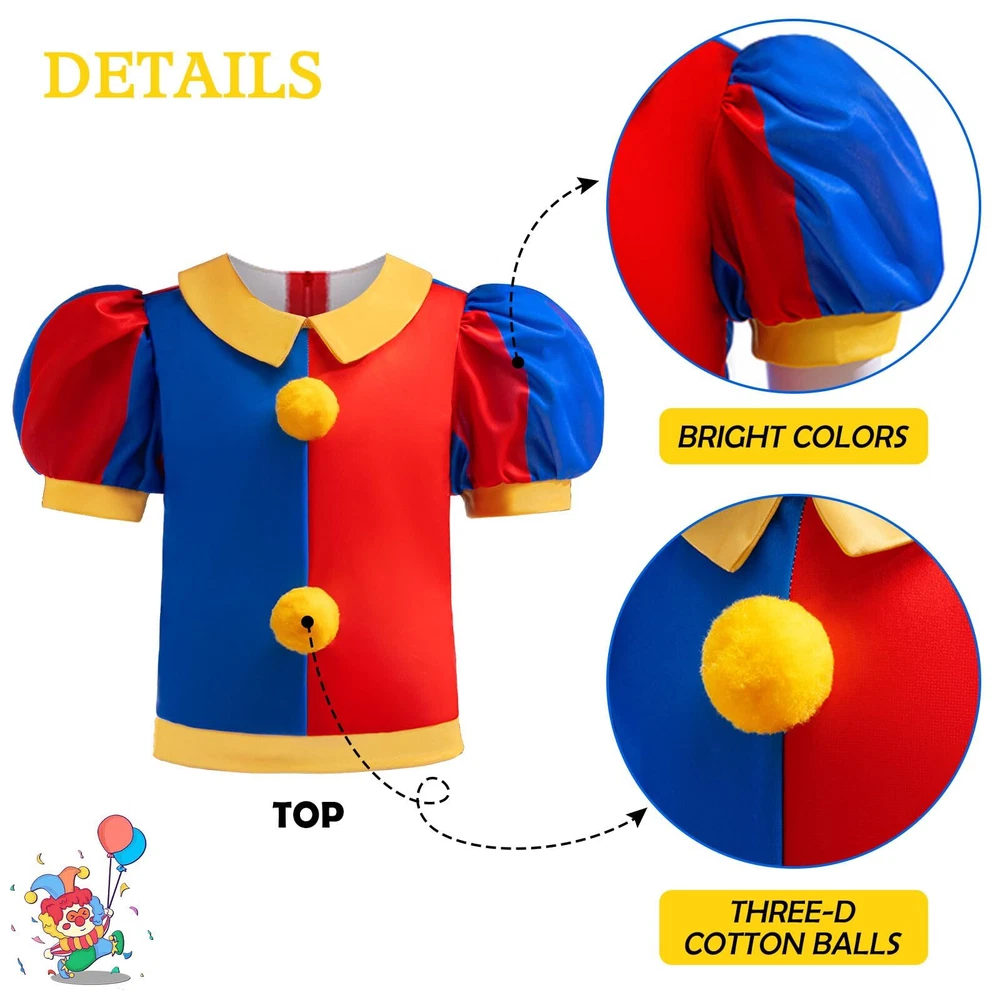 The Circus Costume for Kids is inspiration by the characters from the popular children's Series.It's an incredible costume for your little one. Carnival Circus Costume designed as a convenient two-piece set and back zipper for easy dressing. Match with multicolored Clown wig and Red nose, make the entire Kids Circus Costume more interesting. Crafted from soft fabric for a breathable and comfortable feel.Let your kids enjoy themselves pleasant in Circus cosplay time. Versatile and Fun: This Circus Clown Costume Set is a ideal for Halloween cosplay, Christmas, role play, school plays, carnivals, costume parties, and more. Circus Costume for Kids available in 4 sizes to ensure the perfect fit for your child, please check the "Size Chart" before placing an order.