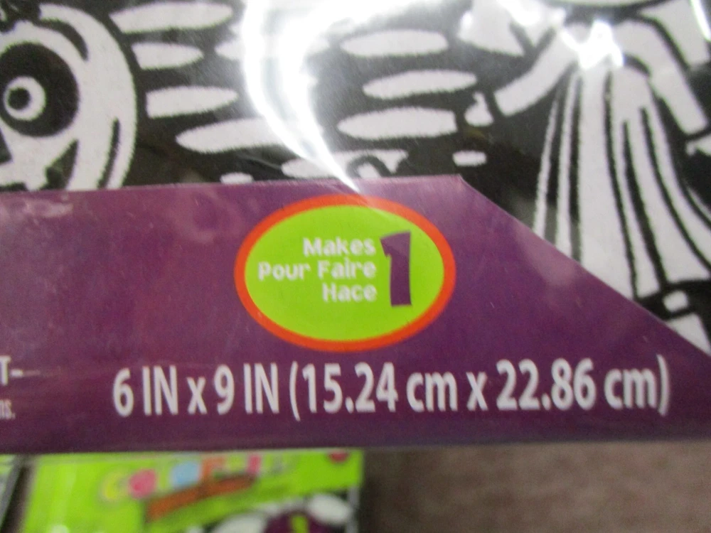 Kids crafts Color-in velvet posters 12 pieces, 4 designs , 3 of each NOTE: one pack does not have any markers and these are older 5+ years old so markers may not be any good ???? each poster is 6" x 9" comes with 3 markers by Darice New great craft for a halloween party for kids