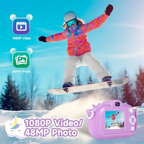 This kids' camera is a fantastic gift! The 1080P resolution and dual lenses make it fun for little photographers to capture selfies and videos. My niece loves the puzzle games and music player—it keeps her entertained for hours. The included 32GB SD card is a great bonus, and the purple color is super cute. Fast shipping and a trusted seller made the purchase smooth. Perfect for birthdays or Christmas!