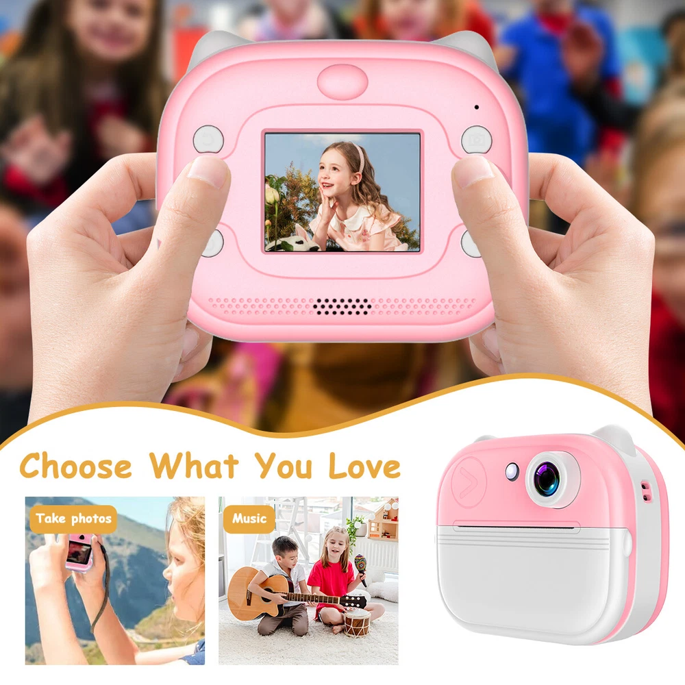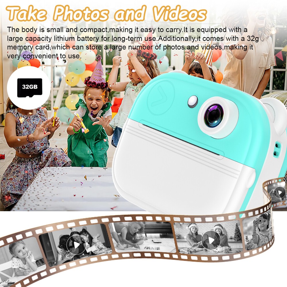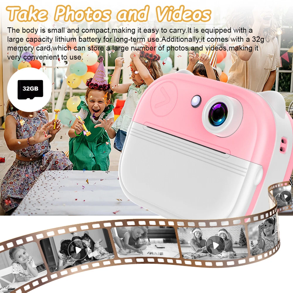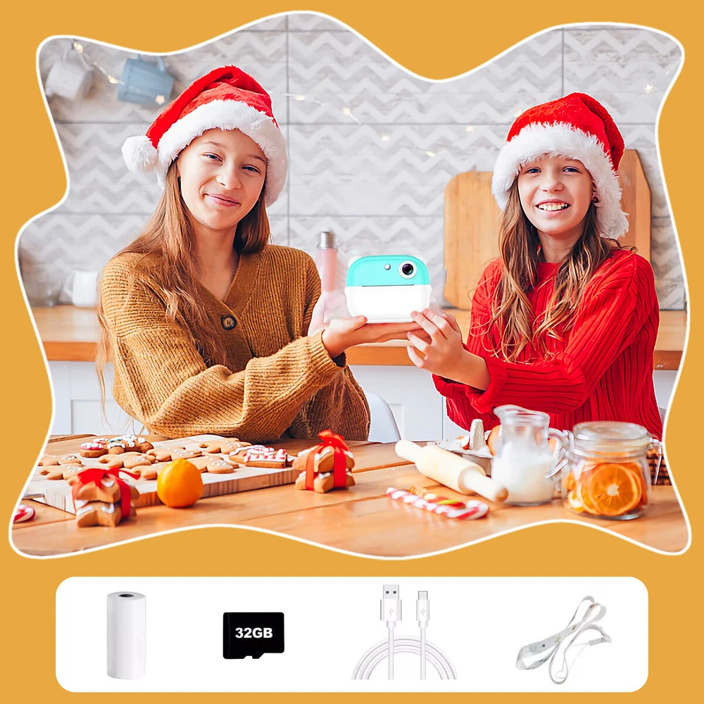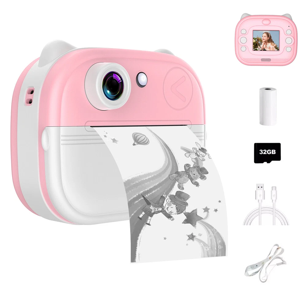 Kids Gifts Instant Print Camera Mini Thermal Printer 1080P HD Camera w/32GB Card