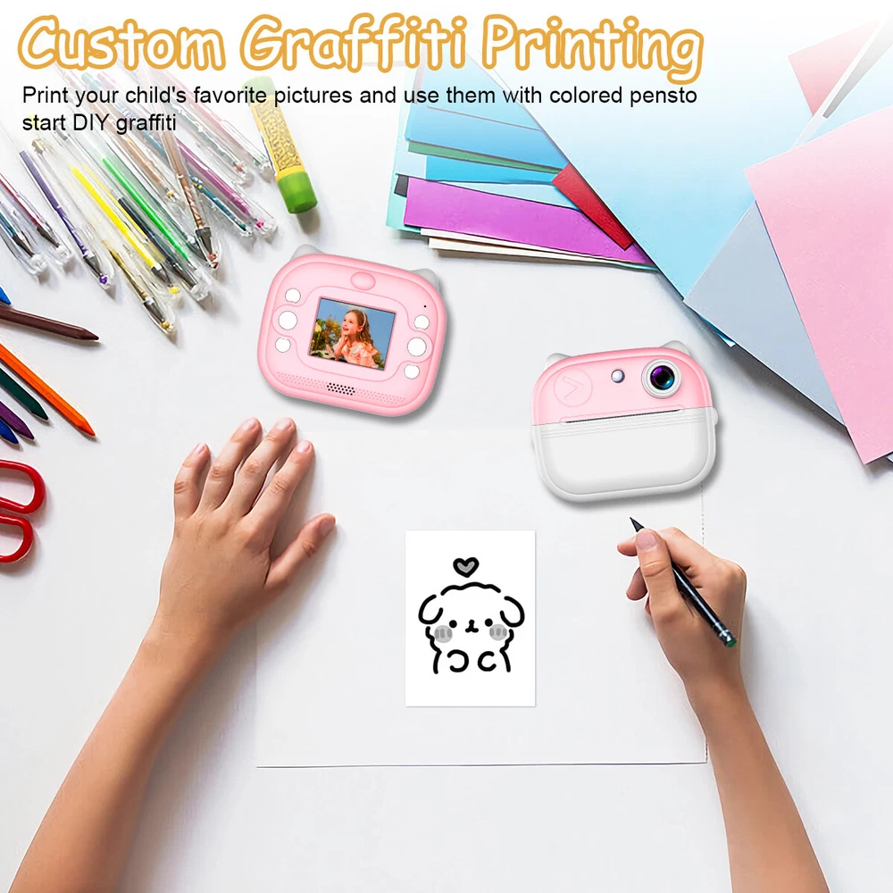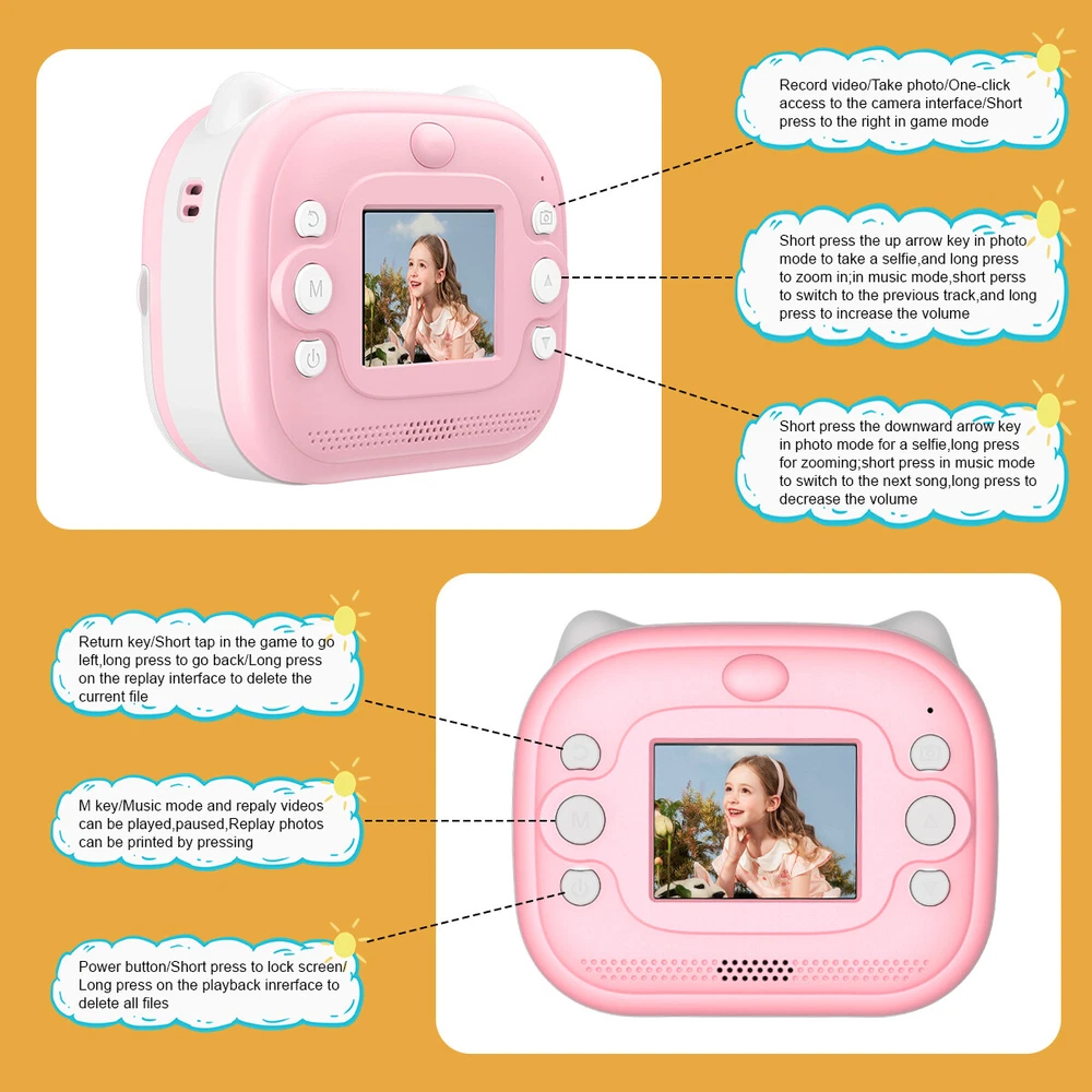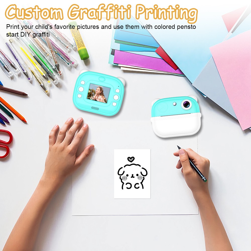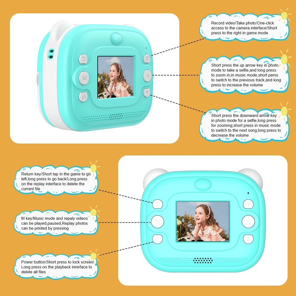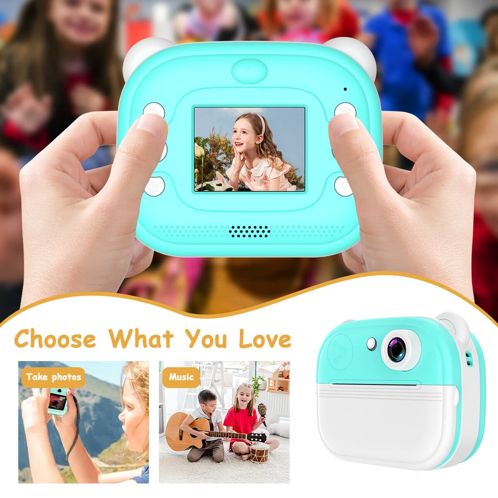 Kids Gifts Instant Print Camera Mini Thermal Printer 1080P HD Camera w/32GB Card