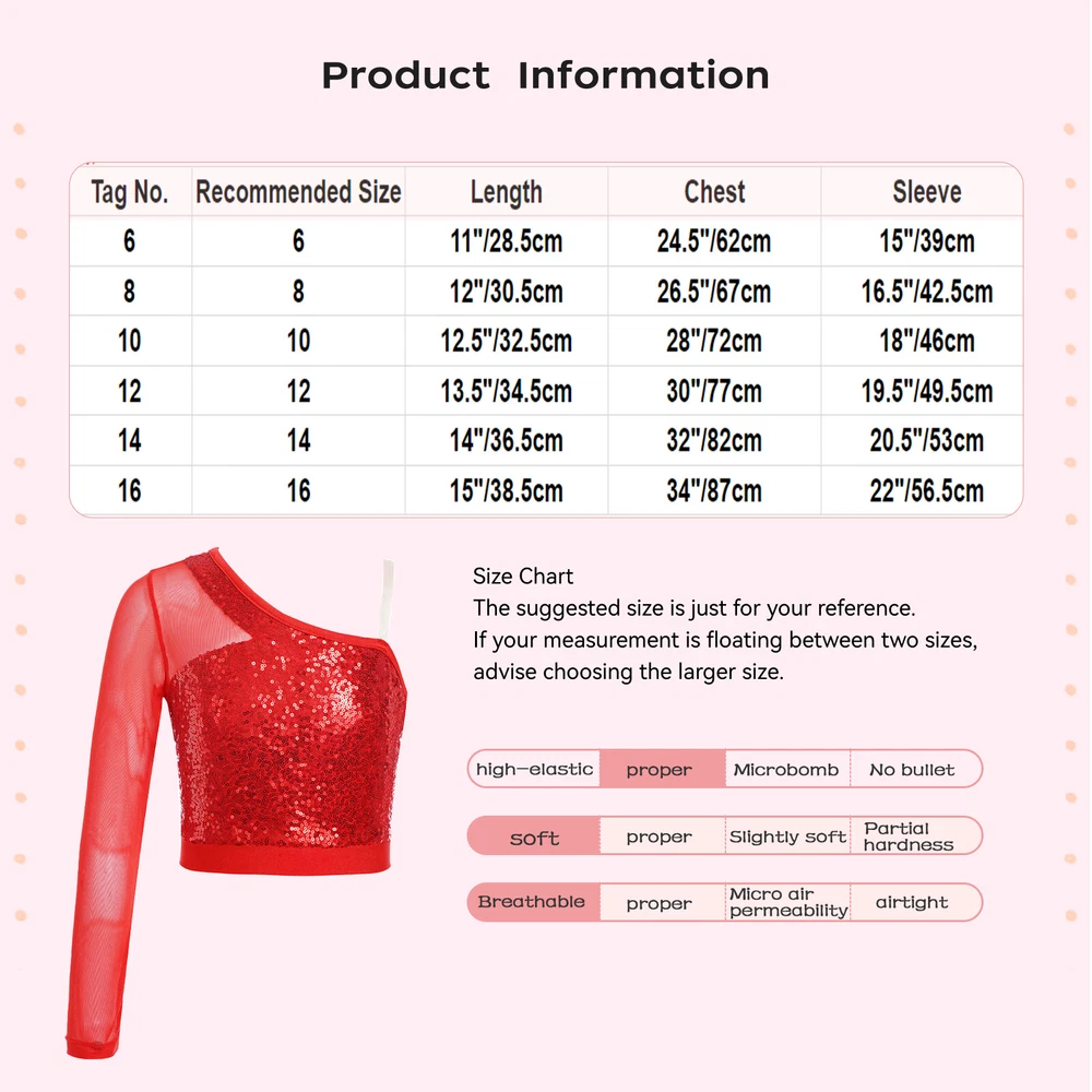 GIRLS DRESSES WOMEN DRESSES MEN UNDERWEAR BODYSUIT SWIMWEAR HOME&GARDEN Click Here to New Arrivals NEW ARRIVALS Kids Girl's Crop Top Latin Tee Shirt Dancing Tops Exercise Blouse Workout Vest #1 Set Include : 1x Crop Top Condition : New without tag Material : 60% Polyester, 30% Sequins, 10% Mesh Features : An unique one shoulder dance top with sheer mesh long sleeve on one side and adjustable spaghetti strap on the other. Girl’s dance top is adorned with sequins that sparkle under the light to brighten up any performance. The lining of glittery sequins dance top is made of soft fabric, no scratchy to girl’s skin, breathable and comfortable to wear. Girl’s sparkly sequins dance top is perfect for pairing with sequins skirt, leather pants, sequins shorts or leggings. Suitable for dance party, jazz dance, cheerleading dance, dance competition, stage performance and other occasions. Size Chart : The suggested size is just for your reference. If your measurement is floating between two sizes, advise choosing the larger size. (Measurements shown in the size chart refer to item measurements, not body) Tag No. Recommended Size Length Chest Sleeve 6 6 11"/28.5cm 24.5"/62cm 15"/39cm 8 8 12"/30.5cm 26.5"/67cm 16.5"/42.5cm 10 10 12.5"/32.5cm 28"/72cm 18"/46cm 12 12 13.5"/34.5cm 30"/77cm 19.5"/49.5cm 14 14 14"/36.5cm 32"/82cm 20.5"/53cm 16 16 15"/38.5cm 34"/87cm 22"/56.5cm Friendly Tips: The size is measured by hands, please allow minor error of measurement. Photo color might be a little different from the actual product due to color display of different monitors. #2 Set Include : 1Pc Dance Top Condition : New with tag Material : 90% Polyester, 5% Spandex, 5% Rhinestone Features : The top is made of high quality material, skin-friendly, breathable, soft and comfortable to wear. Design with long sleeve and round collar, shiny rhinestone decorated and spandex mesh patchwork front. Fashion contrast color outlook, hollow back, navel style, perfect for matching dance pants or skirt. Size Table means age range for girls, but they are for general guidance only, hand wash cold. Suitable for many occasions, for example, party wear, stage performance, dance wear, fashion wear, etc. Size Chart : The suggested size is just for your reference. If your measurement is floating between two sizes, advise choosing the larger size. (Measurements shown in the size chart refer to item measurements, not body) Tag No. Recommended Size Length Chest Shoulder Collar Sleeve Length 6 6 9"/23.5cm 22"/56.5cm 10"/25.5cm 10.5"/27cm 15"/39cm 8 8 10"/25.5cm 24"/61.5cm 10.5"/27.5cm 11"/29cm 16.5"/43cm 10 10 10.5"/27.5cm 26"/66.5cm 11.5"/29.5cm 12"/31cm 18.5"/47cm 12 12 11.5"/29.5cm 28"/71.5cm 12"/31.5cm 13"/33cm 20"/51cm 14 14 12"/31.5cm 30"/76.5cm 13"/33.5cm 13.5"/35cm 21.5"/55cm 16 16 13"/33.5cm 32"/81.5cm 14"/35.5cm 14.5"/37cm 23"/59cm Friendly Tips: The size is measured by hands, please allow minor error of measurement. Photo color might be a little different from the actual product due to color display of different monitors. Product names are trademarks of the listed manufacturer or other owners, and are not trademarks of iefiel_official_shop. The manufacturer does not necessarily endorse use of these products. Terms and Conditions Shipping Combined shipping is limited only to the items listed under this seller account : iefiel_official_shop All the free shipping item don't offer discount. We REDUCE US$1.00 on shipping cost for each additional item. Please contact us to send you the update invoice once you finish your purchase. Please note that only the item in same currency can be combined.Please note that we do NOT offer shipping discount for bidding orders or item value less than $5.00 Please verify your address during checkout. We are not responsible for any wrong or undeliverable addresses. Your item will be sent to your ebay address. Please make sure your ebay address is correct. Any non- received items caused by invalid address are not in our full refund or replacement policy. All items will be shipped within 1 business day after full payment is received. It takes about 10-20 days to US UK AU DE; about 20-35 days to other countries.Shipping may influenced by holidays, events and other uncertainties. We could not guarantee the arrival time. If you can't accept the shipping time, please check the extra charge with us to ship your item via express. Please check my other products below: Womens Toga Stage Performance Dress Greek Costumes Soft Cosplay Roman Dresses AUD 14.99 Kids Boys Tailcoat Outerwear Steampunk Partywear Medieval Jacket Costume Stage AUD 16.99 Women Leotard Latin Dancewear Performance Dress Ruched Costume Asymmetrical Hem AUD 10.69 Men Panties Sheer Jockstrap Nightclub Thong Glossy Underwear Nightwear Briefs AUD 9.59 Kids Boys Gown Greek Robe Ancient Costume Short Sleeve Role Play Greece Togo AUD 17.39 Kids Boy Arabian Prince Tailcoat Halloween Game Character Vest Drama Waistcoat AUD 12.09 Womens Tank Top Glossy Waistcoat Club Vest Biker Jacket Sleeveless Tops Shirts AUD 14.99 Women's Bra Harness Bras Brassiere Vest Spaghetti Straps Crop Top Plunge Tops AUD 9.29 Kids Girls Jumpsuit Carnival Bodysuit Role Play Leotard Magician Keyhole Back AUD 17.99 Girls Jumpsuit Comfortable Romper Figure Skating Leotard Dance Unitard Child AUD 17.99 Girls Dresses Liturgical Dress Patchwork Costume Breathable Gown Worship Robe AUD 14.99 Kids Girls Leotard Xmas Unitard Footless Jumpsuit Supplies Rompers Long Sleeve AUD 9.99 Kids Girls Jumpsuit Fitness Bodysuit Competition Dancewear Keyhole Back Dancing AUD 20.99 Kids Girls Leotard Fitness Bodysuit One Shoulder Gymnastic Biketards Costume AUD 14.99 Kids Girls Jacket Long Sleeve Tops Workout Sweatshirt Contrast Color Uniform AUD 17.99 Womens Tights Catsuit Bodysuit Mesh Leotard Teddy Lingerie See Through Low Neck AUD 9.99 Kids Girls Down Water-Resistant Puffer Vest Coat Leisure Jacket Beach Outdoor AUD 16.99 Kids Girls Alien Cosplay School Dress Outfits Metallic Patchwork Dr