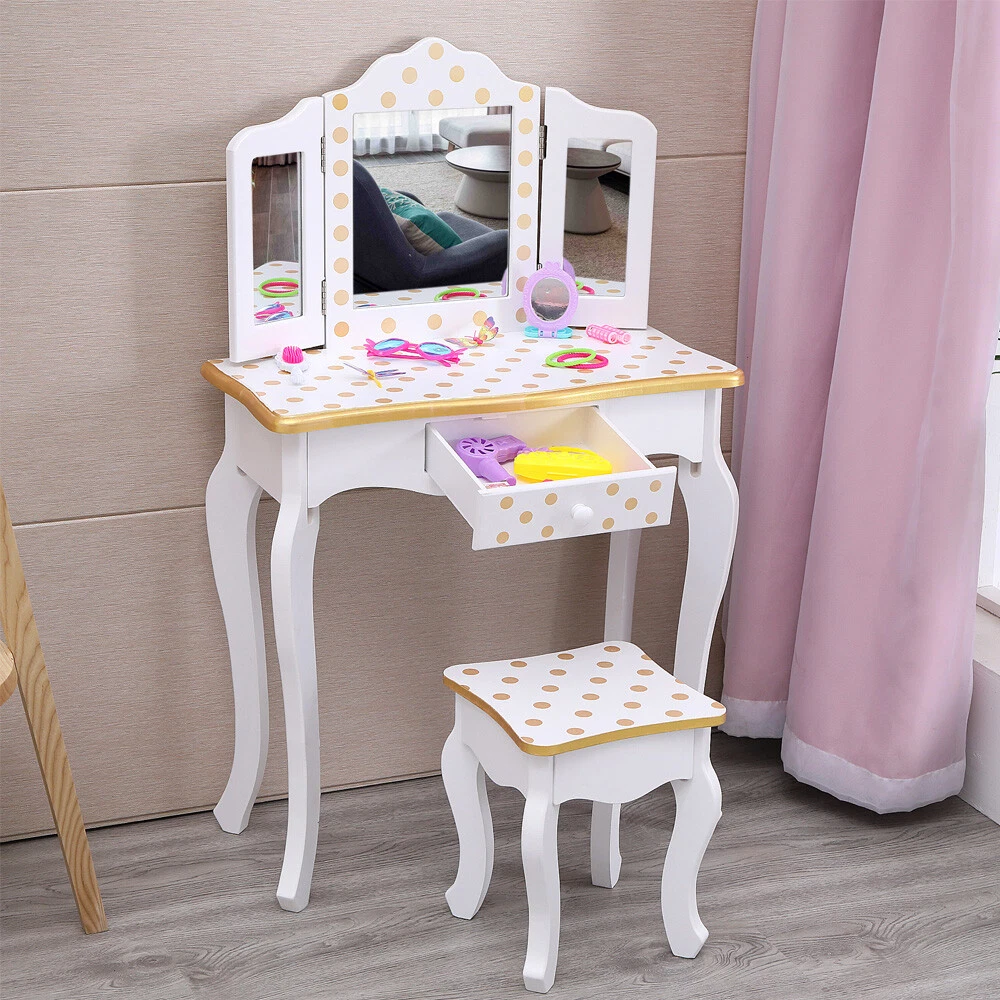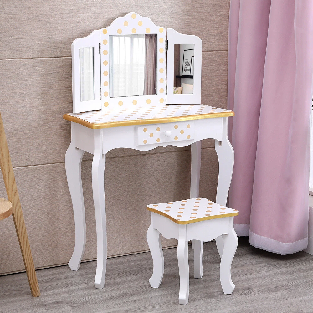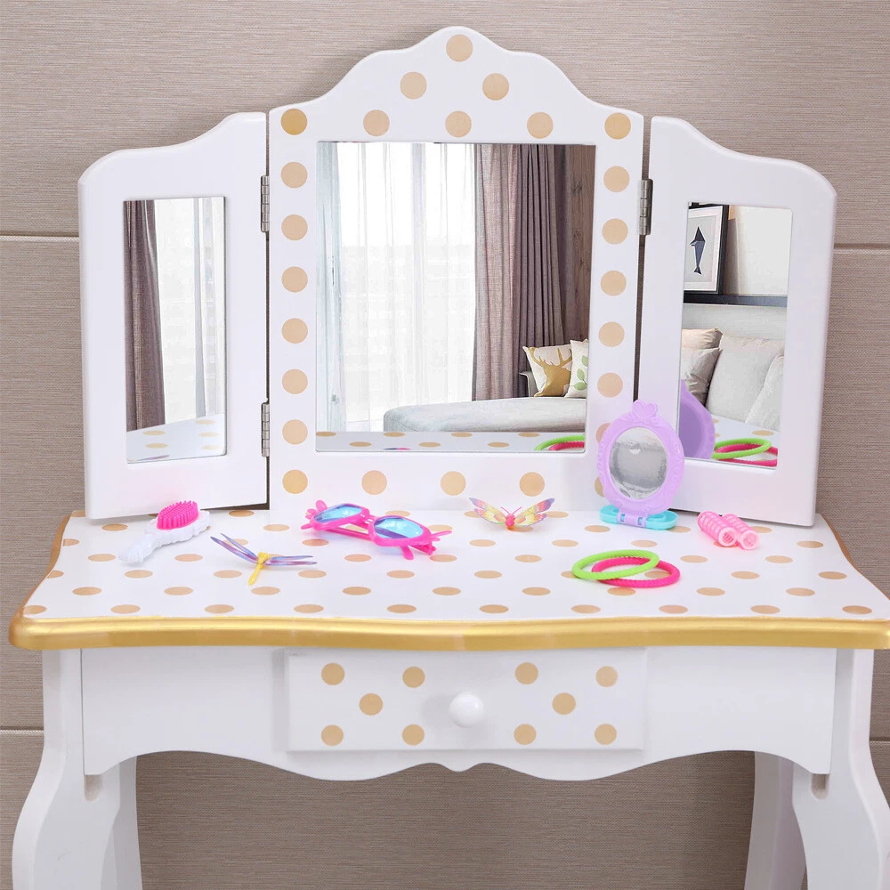 listing template Visit our store Sigh up for email Kids Girls Vanity Table Dressing Table Makeup Mirror With Drawers Children Gifts Kids Vanity Table and Stool Set CLASSIC POLKA DOT DESIGN: This beautiful vanity table and stool have a pink and white finish with polka dots for added style. Both the table and stool have rounded corners, and scalloped legs giving the vanity set a very elegant and stylish design that is very versatile and will complement a range of decor. THREE-SECTION MIRROR: Watch your little one admire their reflection as they get ready to conquer the day. The three-section mirror is made from unbreakable 3mm Plexiglas which gives a better reflection and ensures your child is safe if something was banging into the glass. SPACIOUS STORAGE: A pull-out center drawer with a knob provides a spacious storage area for storing items such as hair accessories, lip balms, stickers, jewelry, etc. to help your little one maintain a clean and tidy environment. MANUFACTURED USING PREMIUM WOOD: Crafted from high quality and eco-friendly solid wood to ensure the vanity is durable and has longevity. The solid wood frame means that both the vanity table and stool are extremely sturdy that won't be easily knocked over and is very safe for your kids to use or used around pets. EASY TO ASSEMBLE & CLEAN: The package comes with easy to follow step-by-step instructions ensuring the vanity is easy to assemble. It can be wiped down with a dry/damp cloth making it very easy to clean and maintain. Specification: Red leopard print and black make this dresser sweet and lovely; Made of solid MDF wood, sturdy and durable in use, which can hold up to 100 Ibs.; A pull-out center drawer with a knob providing spacious storage area; Its elegant round bronzed handle accentuates the super quality of the dressing table; Hardware is included, simply follow the assembly instructions; Product Size: Dresser Dimensions: (23.63 x 11.03 x 38.59)" (L x W x H) Stool Dimensions:(9.85 x 9.85 x 11.82)" (L x W x H) Color: Yellow/White Product Details: Three Way Mirror Looking for a panoramic view of your outfit, face and hair? The three way mirror on the vanity and stool set offers you nothing but the clearest of views. The three way mirror is sure to show you all sides of yourself and be sure your have the perfect look in the ball. Storage Drawer Pull out drawer slides out for extra storage for makeup, brushes, bows, or anything else important to your little ones. Round Corner & Smooth Surface The Vanity and Stool is made with sturdy, solid MDF wood. Each piece is sanded smooth before assembly and coated with a non-toxic finish that prevents scratches and scuff marks. Fashion Print Collection Give your little girl a collection of merchandise as unique as their personality with the Fashion Prints Collection. With exotic, bold patterns and colors your diva is sure to leave an impression with their new furniture pieces. Give them something to rant and rave about today and be as creative as their imaginations will take them. Package Include: 1 x Kids Vanity Table 1 x Vanity Bench 1 x User Manual You might like this more>> Baby Cradle Rocking Crib Newborn Bassinet Bed $89.96 Kids Ride on Powered Motorcycle 6V Toy Battery Electric $89.99 Desk and Chair Set Height Adjustable Kids Children's $82.90 12V Kids Ride on Truck Cars Electric Battery LED Remote $208.99 40" Saucer Tree Swing Flying 440lb Multi-Strand Ropes $41.90 White Teepee Play Tent Kids Canvas Playhouse $34.98 Shipping Policy 1. Ship worldwide from New Jersey by reliable shipping companies -- USPS, UPS, FEDEX, DHL, etc., and only to VERIFIED PAYPAL ADDRESS. Transport Delivery ETA. Package handling only takes 1 business day at our warehouse, so please make sure entering correct payment and shipping information before checking out. Once your payment is completed, we are not going to accept any more changes to your order. 2. International Buyers – Please Note: a. Import duties, taxes and charges are not included in the item price or shipping charges. These charges are the buyer's responsibility. b. Please check with your country's customs office to determine what these additional costs will be prior to bidding/buying. 3. Please check your shipping address carefully before checkout, it can't be changed if order completed. 4. Orders placed on weekend will be shipped within 2 days.Notification of shipment with tracking number will be sent to buyers. 5. Standard shipping: 2-7 business days Expedited Shipping: 2-3 business days One-day Shipping: 1 business day International shipping: Varies 6.Ship within 1 business day once payment completed. Notification of shipment with tracking No. will be sent to buyer. 7.We offer discounts for combine shipping. Please contact us first if you need combine shipping, and an invoice with discount will be sent to you. 8.Please allow 5 business days for delivery to US destinations on any eBay orders and 14 business days for delivery to any International destinations. We highly recommend our buyer choose priority/expess mail for international delivery which is much more stable. Return Policies 1. Refunds given only if item DOA and cannot be replaced via PAYPAL . If so, Please contact us with 5 days since you receive the item and and return to us within 30 days from the delivery date for exchange or refund. 2. If you need return, please contact our customer service representative, let us know the detailed problem and send us some pictures for confirmation. Payment Payment should be sent within 8(EIGHT) days of auction closing. Feedback If you are dissatisfied for any reason, please do not be quick to leave negative/neutral feedback. We work hard to make sure EVERY CUSTOMER 100% SATISFIED and resolve any problem for you. Work Time Work Time: Monday to Saturday About Us | Newsletter| Feedback| Contact Us Copyright © 2021 Yallstore. All rights reserved. 无标题文档 Kids Girls Vanity Table Dressing Table Makeup Mirror With Drawers Children Gift