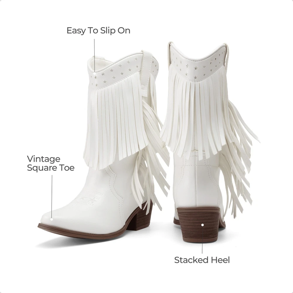 About this item Rodeo Style: Tassels and star-shaped cutouts give these girls' boots a charming western twist. These boots are perfect for dress-up days, birthdays, or a playful ride at the ranch. Vintage-Inspired: With a narrow square toe and stacked heel, these girls' western boots add western charm to her wardrobe. Easy to Slip On: These girls' cowgirl boots are effortless to slip on and kick off. Your little girl can easily put on and take off these boots by herself. Keep Feet Comfy: These fringe cowgirl boots aren't just stylish. Made with a soft lining and insole, these boots for girls are also comfortable to wear. Walk with Stability: Made with a non-slip TPR outsole, these girls' western boots offer reliable traction so she can walk, run, and play without fear of slipping. Payment Shipping Return Contact us Feedback Payment 1.Payment must be received within 7 business days of auction closing. 2.We ship to your eBay or Paypal address. Please make sure your eBay and Paypal address is correct before you pay. Shipping 1. We try our best to ship out same day for payment cleared before 5.00 PM (Pacific Time) 2. Order placed on weekend or holiday will be shipped on Monday or next working day. Return 1.We offer 30 days return policy. Please contact us within 30 days from the date you receive your order if you have any issues with the product and want to return. 2.All items must be returned in the original packaging and you must provide us with the tracking shipping number, specific reason for the return, and your eBay ID. 3.We will refund you FULL WINNING BID AMOUNT, upon receipt of the item in its original condition and packaging with all components and accessories included, AFTER BOTH Buyer and Seller cancel the eBay transaction. Or, you can choose to get a replacement Contact us All communication is done through EBAY MESSAGES ONLY. If any question, please feel free to contact us via "Ask seller a question" or "Contact Seller",We try our best to reply to your emails as soon as possible, due to high volume of daily incoming emails and time zone difference, we may not be able to reply your emails immediately. Please allow 1-2 business days for us to response. Feedback When you receive the item and satisfied with the product, please leave us positive feedback. If for any reason you are not satisfied with your purchase from us, please contact so we can get to work and resolve this issue for you. Please don't leave neutral or negative feedback without giving us an opportunity to try and make it right. Our goal is to ensure a happy shopping experience with us. Your Positive feedback is very much appreciated! On Aug 7, 2025 at 19:20:41 PDT, seller added the following information: On Sep 8, 2025 at 19:16:46 PDT, seller added the following information: