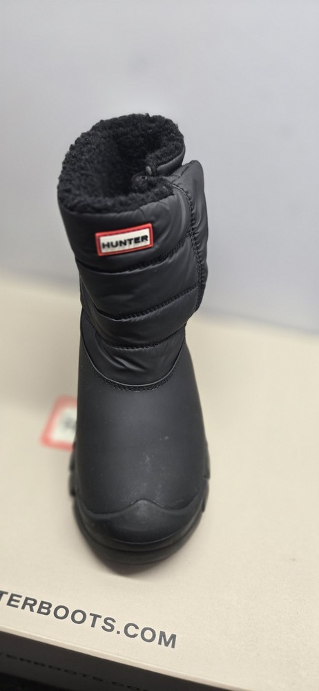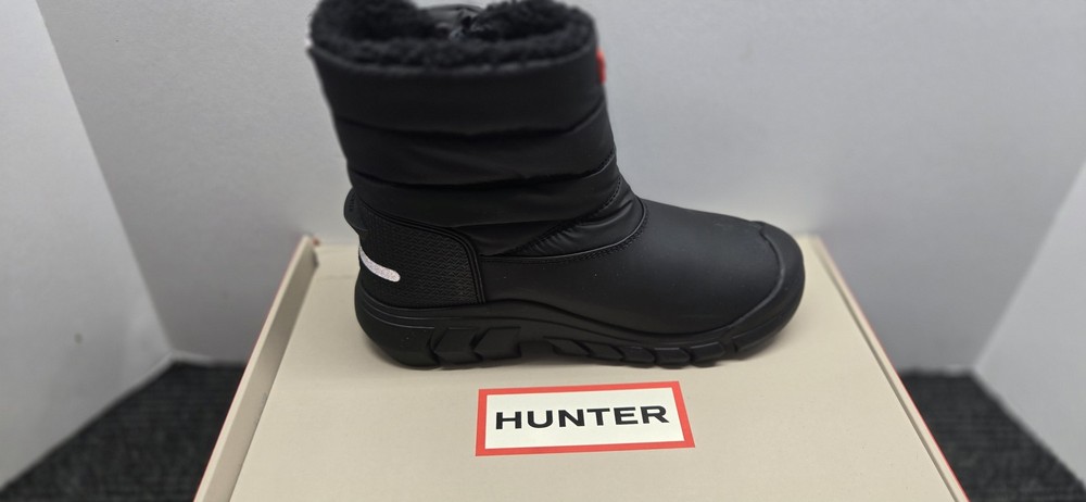 Hunter Boots Snow Boot Shoes Kids Size 2 Black Insulated Waterproof Winter Condition: Brand New without Tags -- no visible flaws, never worn Exterior is durable black synthetic/textile shell designed for protection from snow and water Plush black faux fur lining for added warmth and comfort Pull-on style with reinforced heel tab and hook-and-loop strap on back for easy fit Prominent HUNTER logo badge at front Reflective accents on heel and back for safety Thick lug rubber outsole for superior traction in icy and snowy conditions Model: BK Snow Boot, color Black (005) Size: Kids Big Kid US 2 / UK 1 / EUR 34 All original box packaging included as shown in photos Perfect for winter, cold weather, snow, and outdoor play
