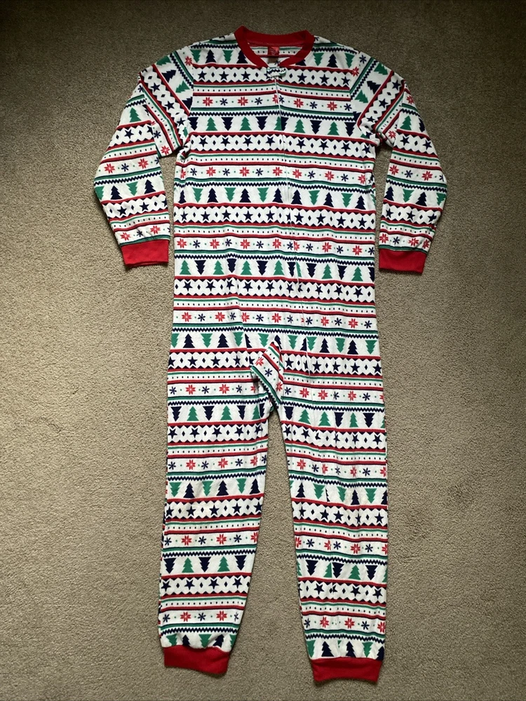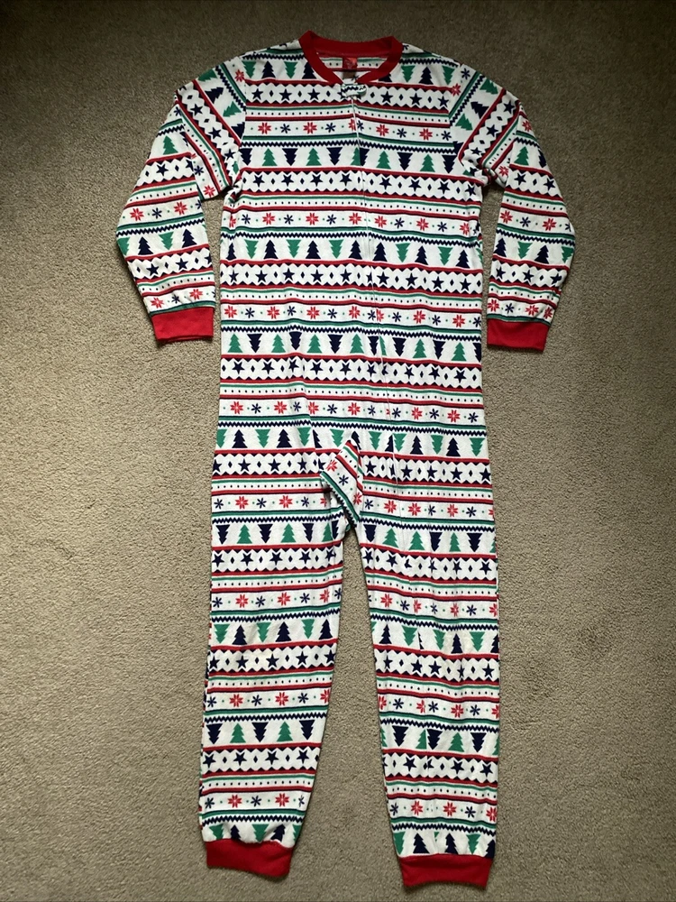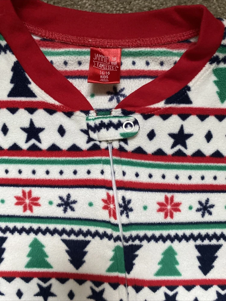 Kids Jammies For Families Size 14/16 One Piece Zip Up Holiday Fleece Pajamas. Condition is Pre-owned. Shipped with USPS Ground Advantage.