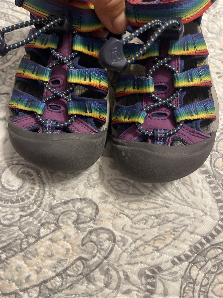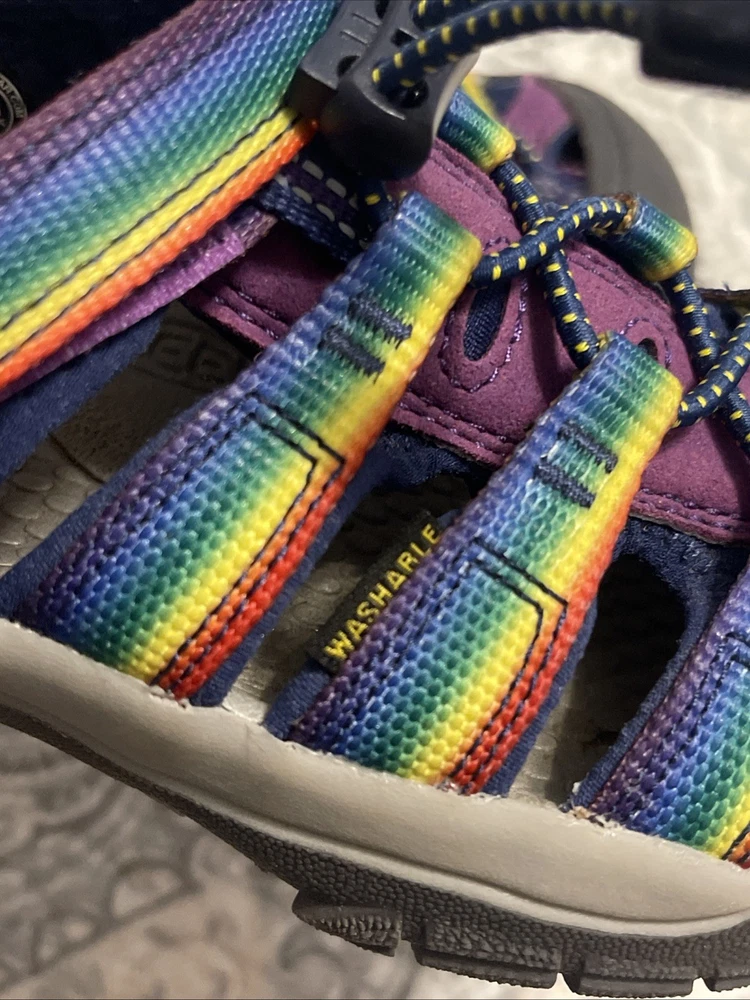 Kid's Keen H2 Strappy Rainbow Print Outdoor Water Sandals In excellent condition, once used they are like new. They are comfortable and cool for children, perfect for any occasion and any climate. The colors are very pretty and children love them. See photos for details.