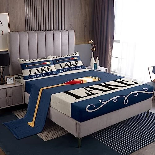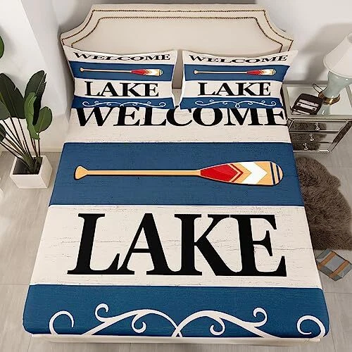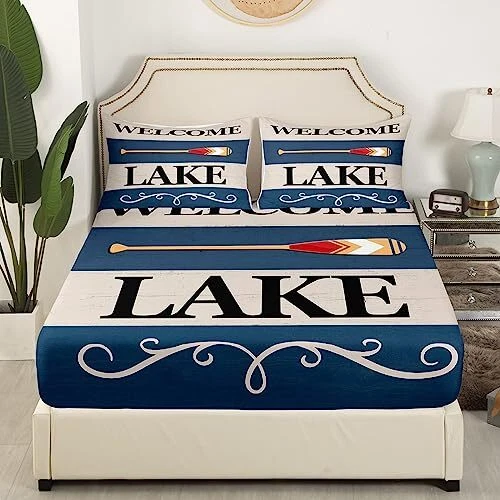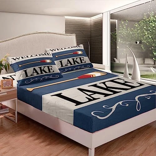 Return Policy Fast Delivery Trusted seller Kids Lake Sheet Set Queen Size Lake House Paddle Relax Bed Sheets Set for Boys Girls Teens Bedroom Decor Lake House Sheets with Deep Pocket Fitted Sheet Lake Cabin Decor Blue Bedding Set Product Description Material: Made of microfiber, which is soft and breathable; our bed sheet create a good sleep environment for kids and adults; vivid pattern and vibrant color makes your bedroom full of imagination; good for your boys, girls, family and friend Size: Queen sheet set included 1 queen fitted sheet 60 inch x 80 inch x 16 inch , 1 queen flat sheet 90 inch x 102 inch , 2 pillowcase 20 inch x 30 inch Deep Pockets: Fits mattresses up to 16 inch deep with elastic all around the fitted sheet Washing Tips: They are machine washable in cold water and dry quickly on tumble Unique Design: Used thoughtful designs featuring vibrant colors and interesting patterns, this sheets set makes an elegant and vintage statement in your bedroom; based on a diverse set of characteristic designs Shipping Returns Payment Shipping Shipping is FREE to all addresses other than APO/PO boxes in the lower 48 states. All our stock ships from US-based warehouses. Shipped via USPS or UPS (depending on location and package weight) Unless stated otherwise, all orders will ship within 24-72 hours of your payment being processed. Check our feedback to see the great reviews of FAST shipping we offer. Returns Seller does not accept returns Payment We currently accept payment via eBay managed payments only. Once payment is cleared, we will dispatch your shipment within 1-3 business days. Please refer to the "Shipping" tab for more information regarding shipping speed to your destination.