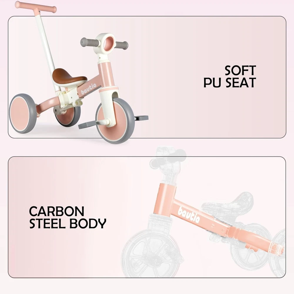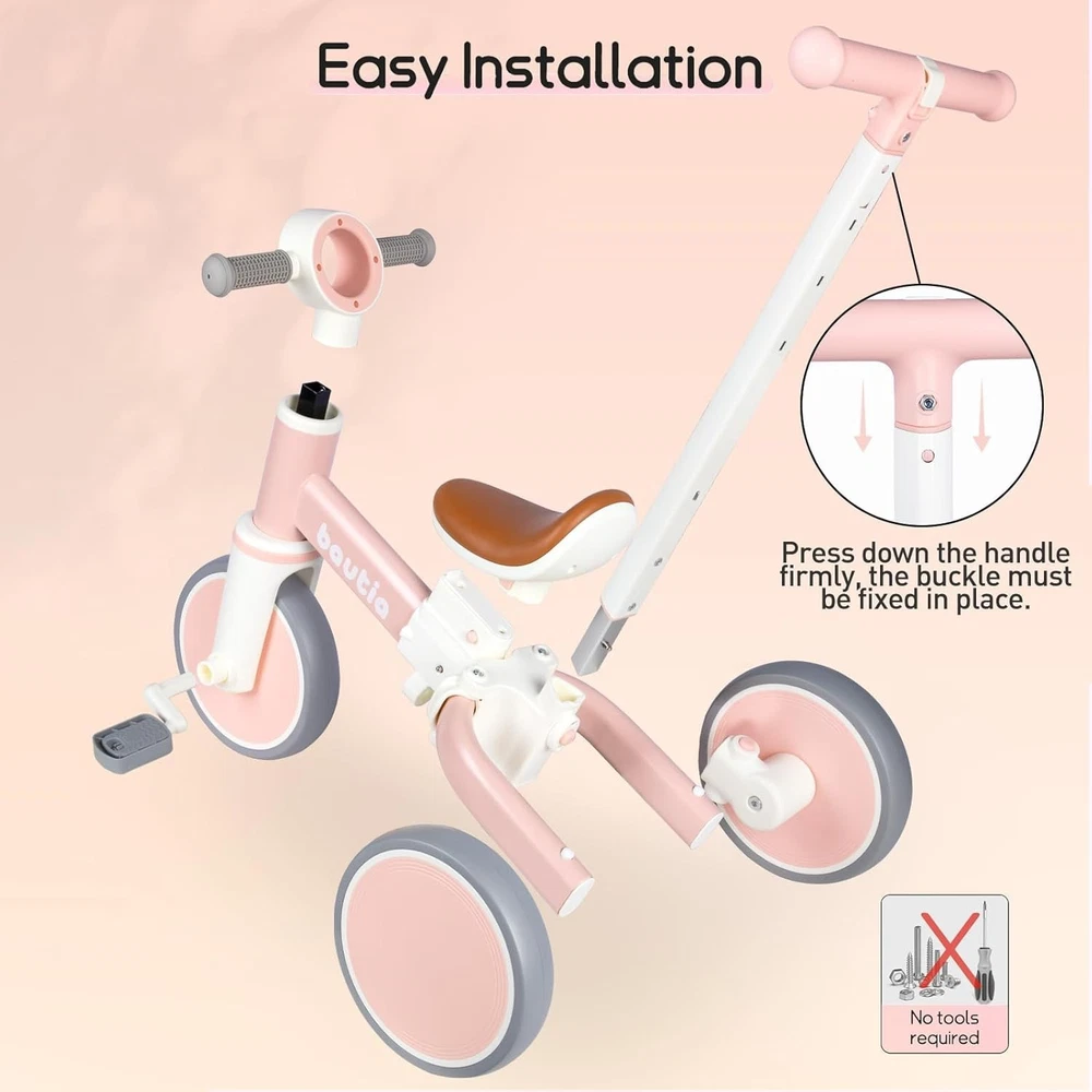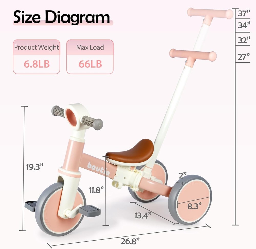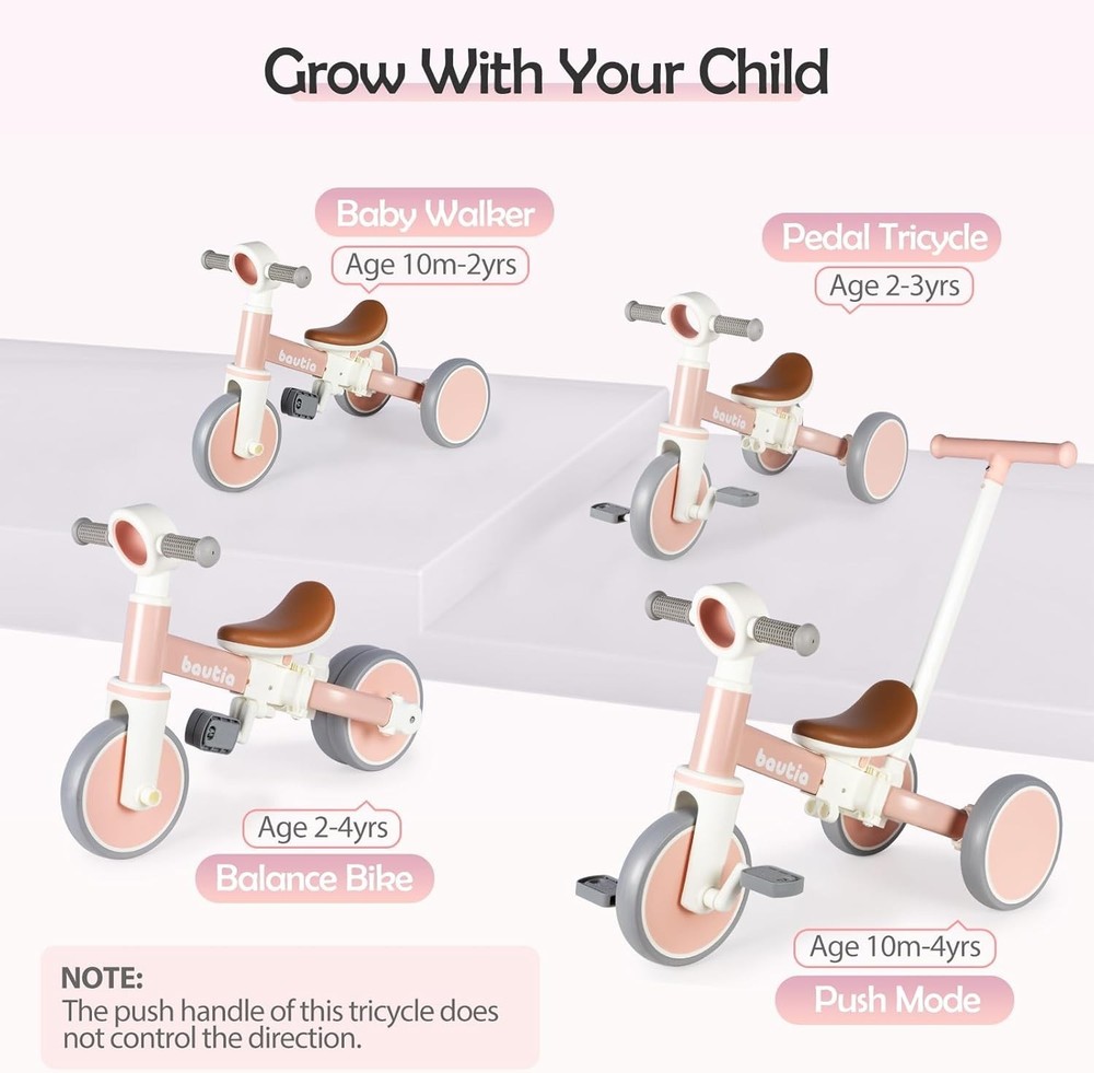 Kids Lightweight Tricycle with Removable Pedals - Ideal Gift for Toddlers ‹ › ‹ › ‹ › ‹ › ‹ › ‹ › ‹ › ‹ › ‹ › ‹ › Kids Lightweight Tricycle with Removable Pedals Ideal Gift for Toddlers Features: 5 MODES: The tricycle adapts as your child grows, switching from a Push Tricycle to a Push Balance Bike, or even a traditional Tricycle and Balance Bike. This versatile design makes it the perfect companion for your child's journey of exploration. SAFETY FIRST: Made from high-quality, BPA-free materials and finished with non-toxic paint. The 100° rotation limit on the steering handlebar prevents rollover, while the comfortable, thickened handle cover and non-slip pedals ensure thrilling yet safe rides. EASY TO ASSEMBLE & USE: Featuring a snap-in design for hassle-free installation, this toddler bike can be ready to roll in minutes without the need for any tools. The push handle height can be adjusted across four levels to maintain comfort for parents while walking alongside. RELIABLE DETAILS: Constructed with a robust carbon steel body, this lightweight tricycle is built to withstand endless adventures. The EVA foam wheels are wider for greater loads, ensuring a smooth ride both indoors and outdoors. IDEAL GIFT CHOICE: The tricycle not only offers fun but also aids in developing balance, coordination, and strength as your little one learns to steer. With a maximum load capacity of 66lbs, it’s the perfect gift for boys and girls aged 10 to 4 . Why Choose Our Kids Lightweight Tricycle? Looking for the perfect gift that combines fun, safety, and growth? Our Kids Lightweight Tricycle offers versatile modes for all stages of exploration and play. Designed with safety and comfort in mind, every ride assures joy and laughter while nurturing essential skills. Ideal for toddlers, this tricycle will be the joyful companion in countless adventures. Order the tricycle today and watch your child's confidence soar as they embark on their next thrilling ride! Shipping Free & Fast Shipping - We offer free shipping to most of the USA with a normal delivery time of 3-7 days. However, due to the current situation, additional delivery time (up to 3 weeks) may be required for some items. Alternative Carriers - We may use alternative carriers (e.g. USPS, FedEx, UPS, etc.) to ensure your package arrives safely and on time. Due to the use of multiple carriers, we are unable to provide a tracking number automatically. Handling Time - Orders are processed and shipped within 1-2 business days of receiving cleared payment. Shipping Restrictions - Shipping to Alaska, Hawaii, Puerto Rico, Guam, and other US territories may incur shipping charges or delivery restrictions. Please contact us before ordering, or your order can be refunded/cancelled. State Restrictions - There may be restrictions based on your state of purchase. For example, certain items may not be shipped to California due to state regulations. Contact for Tracking Updates - If you require tracking updates or have any concerns about the delivery of your order, please feel free to contact us, and we will be happy to assist you. Return 30-Day Hassle-Free Returns - We want you to be completely satisfied with your purchase. If you are not, you can return the item within 30 days of receiving it for a full refund or exchange. Easy Return Process - To start a return, simply contact us and we will provide you with a prepaid return shipping label and detailed instructions. Restocking Fee - There are no restocking fees for returns. However, the buyer is responsible for return shipping costs if the return is not due to a seller's error. Refund Processing Time - Refunds will be processed within 5 business days of receiving the returned item in its condition. Payment We accept all major credit cards, PayPal, and Apple Pay for your convenience. Your payment information is secure and encrypted to ensure a safe and seamless transaction. Please complete your payment within 3 days of purchase to avoid any delays in shipping. Feedback Your feedback is extremely important to us. We strive to provide the best products and customer service possible. If you are satisfied with your purchase, please take a moment to leave us a positive review. If you have any concerns or issues with your order, please contact us before leaving negative feedback. We are committed to resolving any problems and ensuring your satisfaction. Contact Us If you have any questions or concerns, please feel free to out to our customer support team. You can contact us through the eBay messaging system. We are available Monday to Friday, 9:00 am to 5:00 pm EST, and we will do our best to respond to your inquiry within 24 hours. Buy it now and enjoy a pleasant shopping experience! Recommended Age Range: 1-4 Type: Tricycle Number Of Wheels: 3 Gender: Boys & Girls