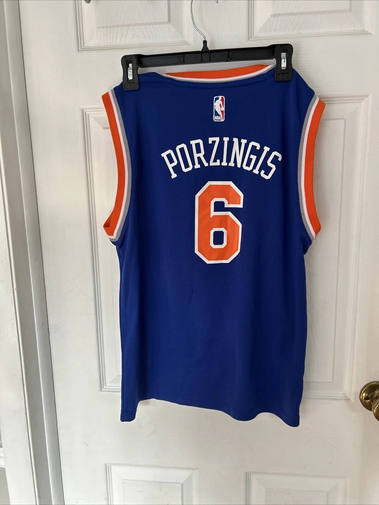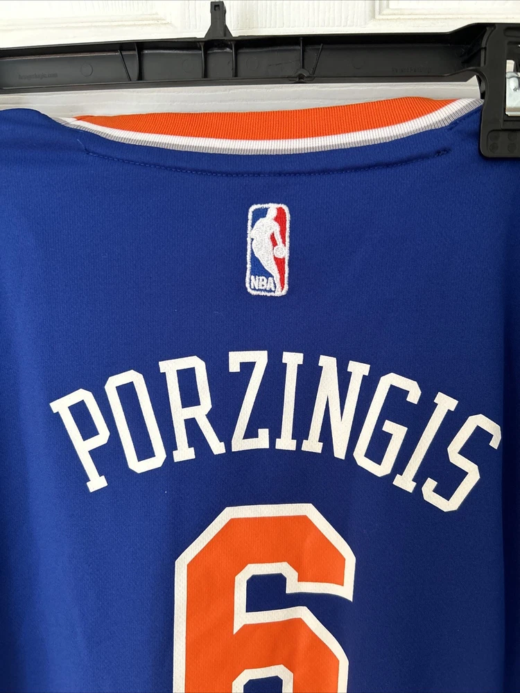 Show your love for the New York Knicks and basketball legend Porzingis with this officially licensed NBA jersey. Featuring the number 6 and made from high-quality materials, this unisex children's jersey is perfect for any young fan. Represent your team and player with pride while enjoying the comfort and durability of this authentic jersey. Whether you're watching the game from the stands or playing basketball yourself, this jersey is a must-have for any true fan. Don't miss out on the chance to show your support for the New York Knicks and Porzingis with this stylish and functional jersey.